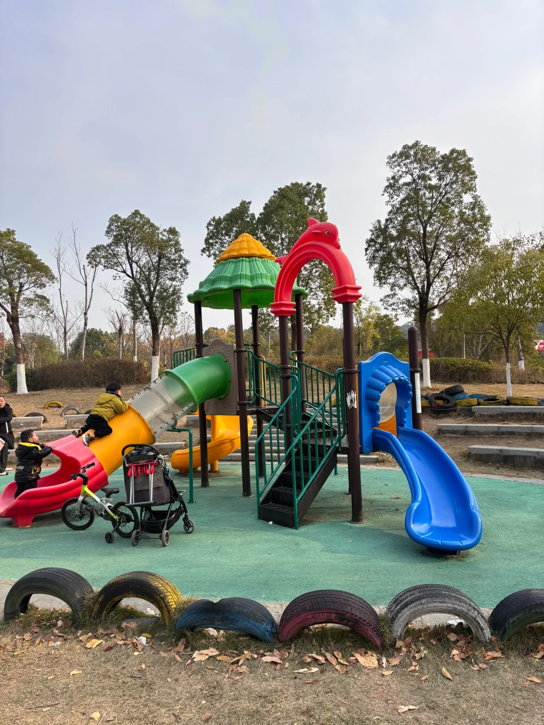 在武汉市区内! 南湖华农北门! 一条沿湖栈道,旁边的红杉林绝美! 🚌公交:华农北站 🚗开车:揽胜汇停车场(出入口)6r/h 我们车停在停车场图9,步行过去路线(图10-11) 这里是揽胜公园⛲️,公园有一个小小的滑滑梯🛝,如果带娃可以玩玩,蛮小😭,从公园穿过去就是红杉林,路杂草丛生阿,如果大家公交去,下公交直接往下走就到啦~