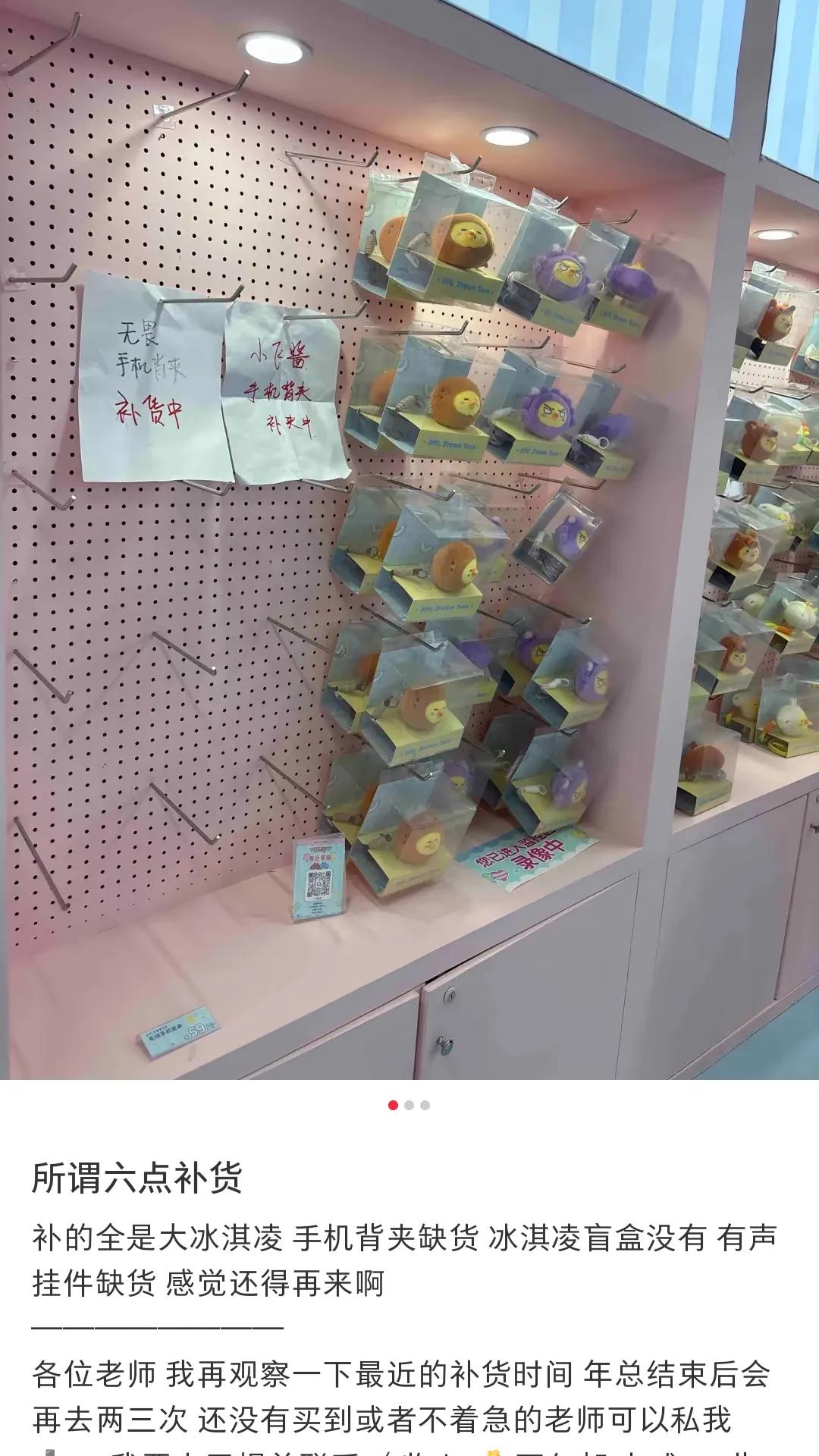 店里面,货架上的手机背夹、冰淇淋盲盒(冰淇淋样式的毛绒梦叽公仔,不是真的冰淇淋)经常秒空。为了防黄牛,现场最火的时候甚至要答对题目才能剁手,但工作人员补货的速度还是追不上粉丝的手速;