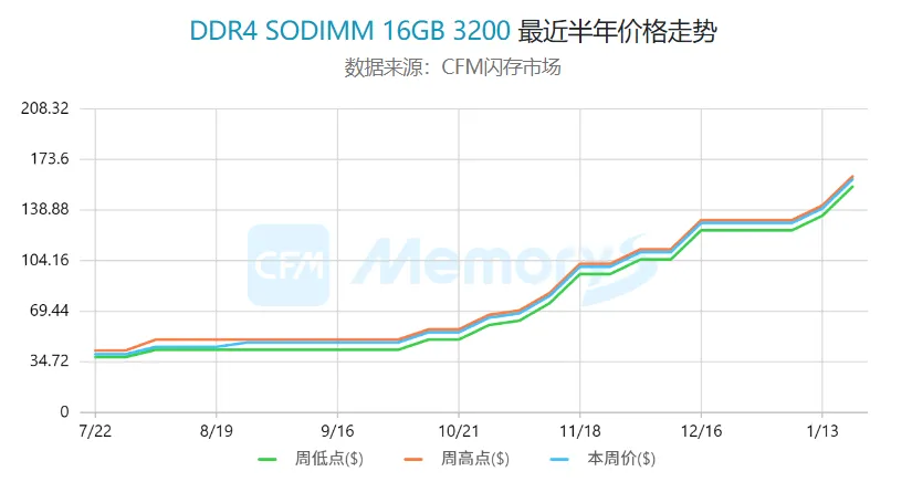 供需失衡情况下DRAM开始暴涨,DDR4模组从约2美元涨到8美元以上,