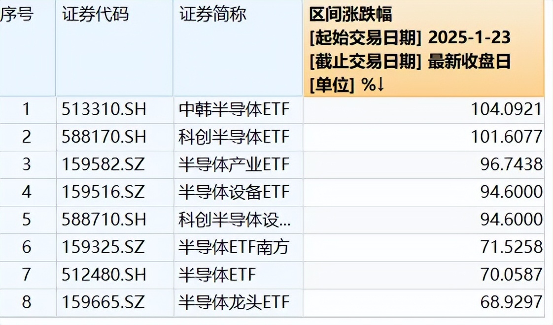 最近一年以中韩半导体ETF为例,涨幅达到了125%,跑赢所有其他的半导体ETF,期间场内多次出现10%以上的高溢价率。