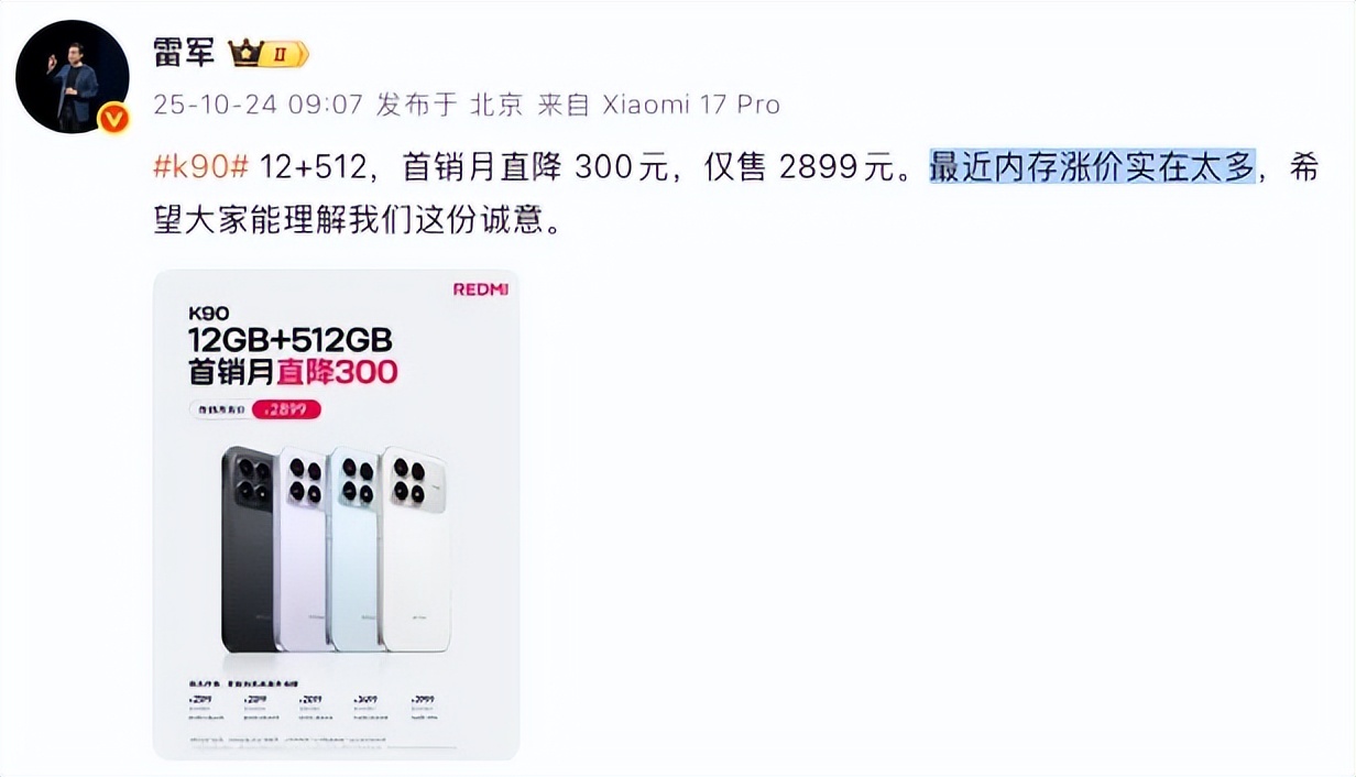甚至前段时间雷军都跑出来抱怨现在的内存太贵了,影响了小米的价格。