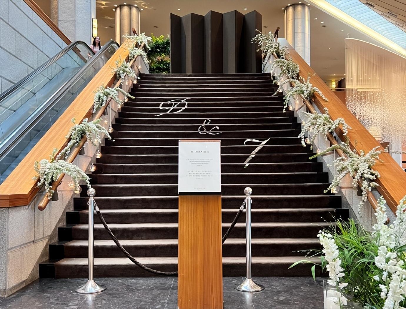 据悉,李多海婚礼酒店是韩星结婚首选地,宋慧乔、全智贤等人都在这里办过。在入场区,台阶上摆放了李多海与Se7en的名字缩写,进场后会先看到由绿色植被搭建的巨型拱桥。