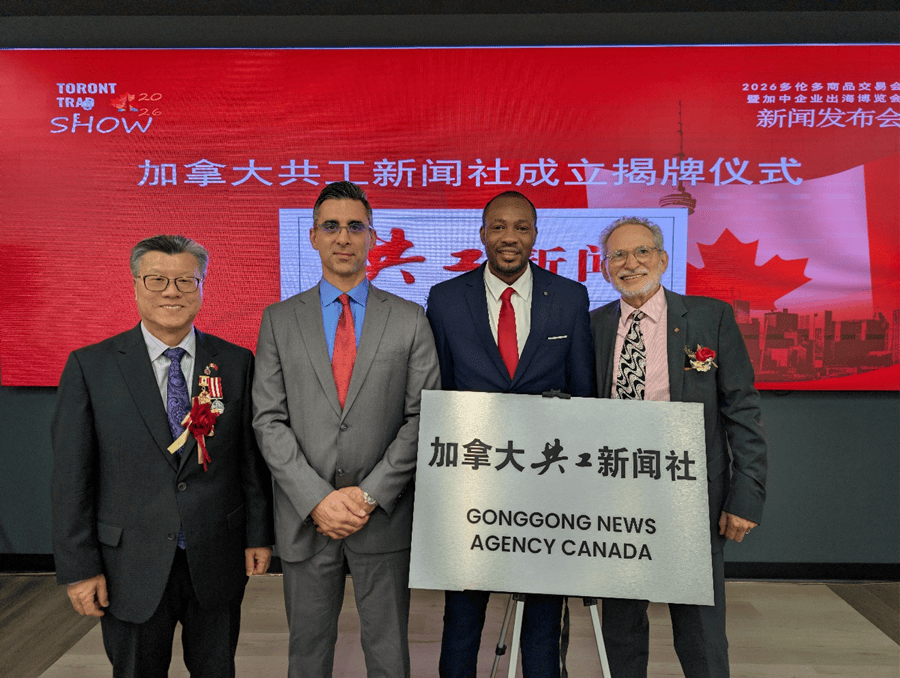 加拿大共工新闻社多伦多讯(记者 董勇)2026年1月8日,加拿大共工新闻社在多伦多正式宣告成立,揭牌暨签约仪式隆重举行。加拿大联邦、省、市三级政府政要,中国驻多伦多总领事馆官员,当地商协会、企业界代表以及多家主流媒体记者近200人出席活动,共同见证并祝贺加拿大共工新闻社成立。