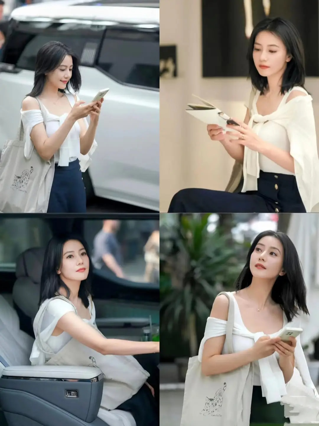 1. “黑白配”造型的时尚哲学简约高级:高圆圆选择黑色V领马甲搭配白色半裙,经典的黑白配色既端庄又充满现代感,完美诠释“少即是多”的时尚理念。
