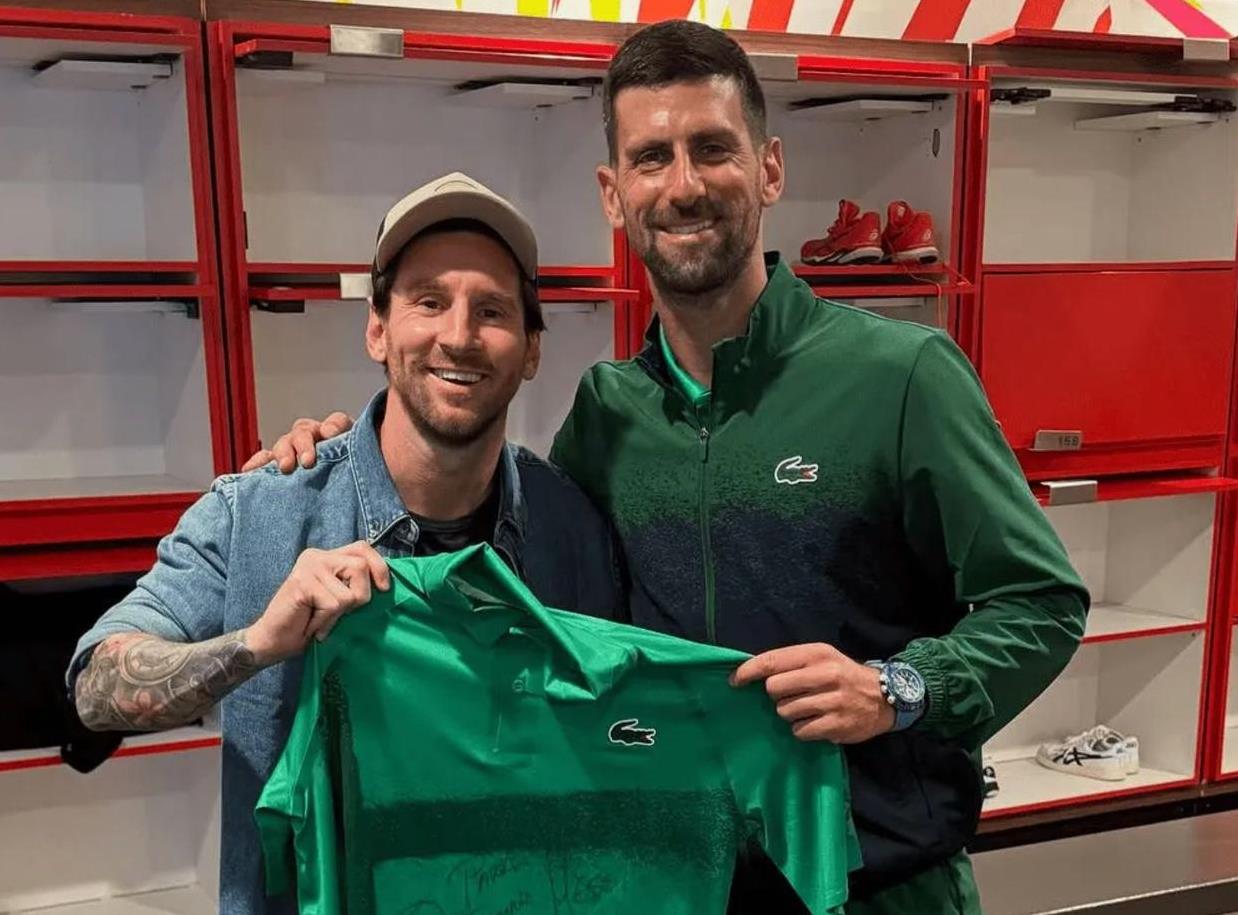 德约也注意到了梅西的到来,但由于正在比赛,他无法与梅西交谈。比赛结束后,德约找到了梅西,两大天王进行了对话,并亲密合影。合影时,梅西和德约共同举起了德约的球衣。球衣上还有德约的签名,显然这是德约送给梅西的见面礼。德约的好友德尔波特罗也参加了这次合影,他将照片发到社媒,并写道:“goat给goat送球衣。”