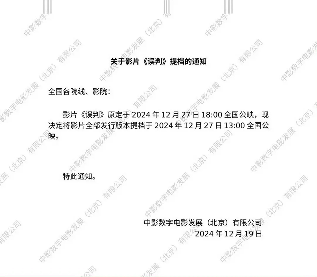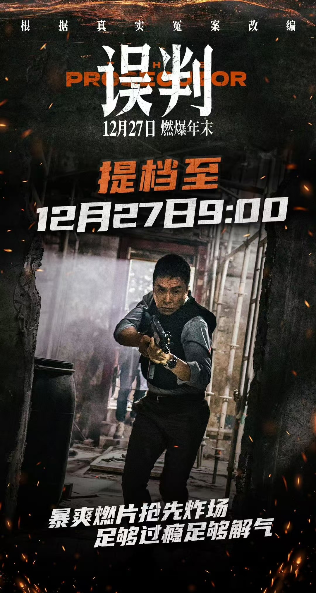 甄子丹自导自演的律政动作片《误判》太逗了,一开始决定2024年12月27日晚上6点上映,后来提档至下午1点上映,再后来又提档至上午9点上映。