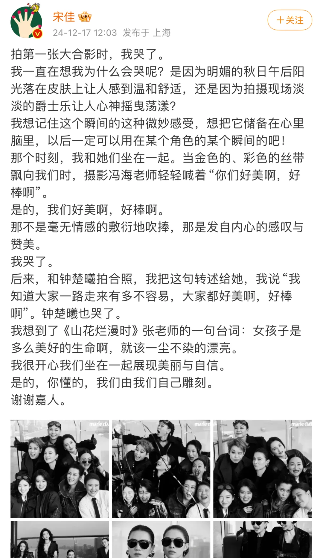 2024年电视剧电影双爆。一部《山花烂漫时》9.6,一部《好东西》9.1,口碑票房双收,还诞生了张桂梅和王铁梅两个人生角色,横扫明年的电视剧电影颁奖典礼无疑。 姐的事业运不是好,而是好到爆炸啊!真如她发微博说的那句:我们由我们自己雕刻。 转发这个宋佳,希望明年也有这个事业运。