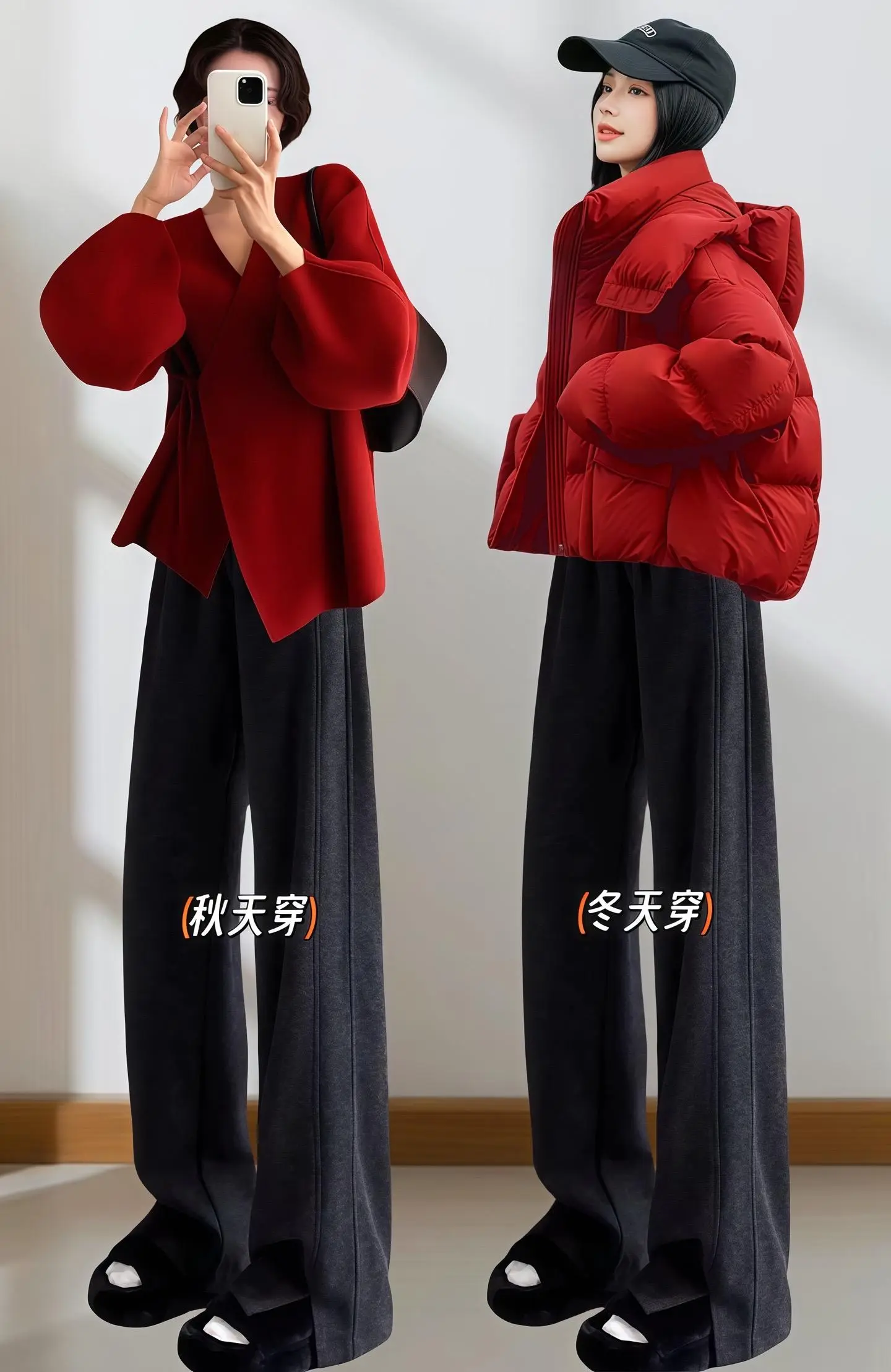 人字纹开叉阔腿裤!加绒加厚保暖一条过冬!质感满满,版型显瘦显腿长~休闲百搭不挑人