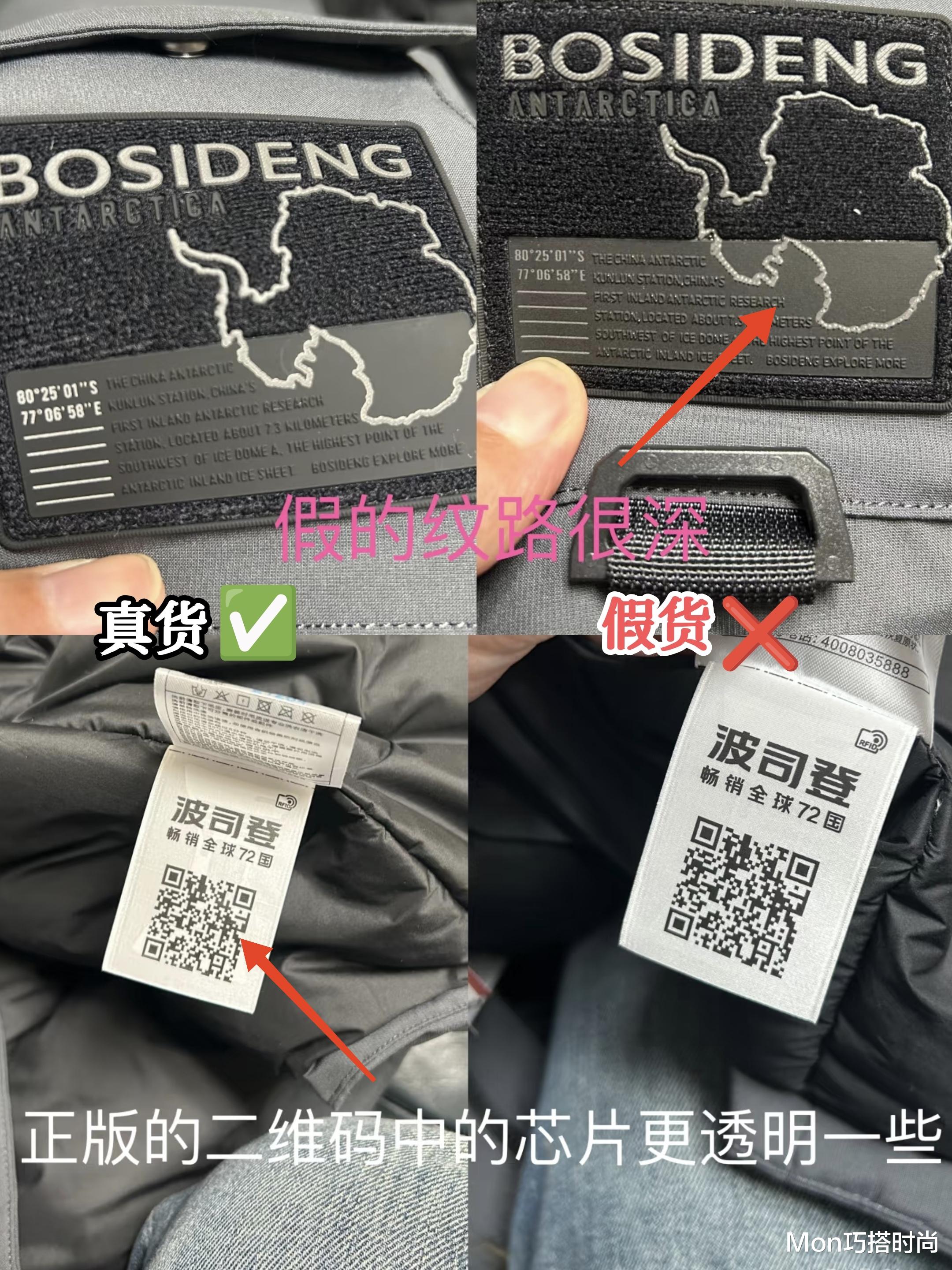 我从网上买了两件同款波司登羽绒服进行对比,大家来看有什么区别:没错,假货的品牌logo纹路和标签上的二维码颜色更深。而且正版背部都是黑线,假货的缝线会泛白,大家购买时也可以从这些细节辨别真假。
