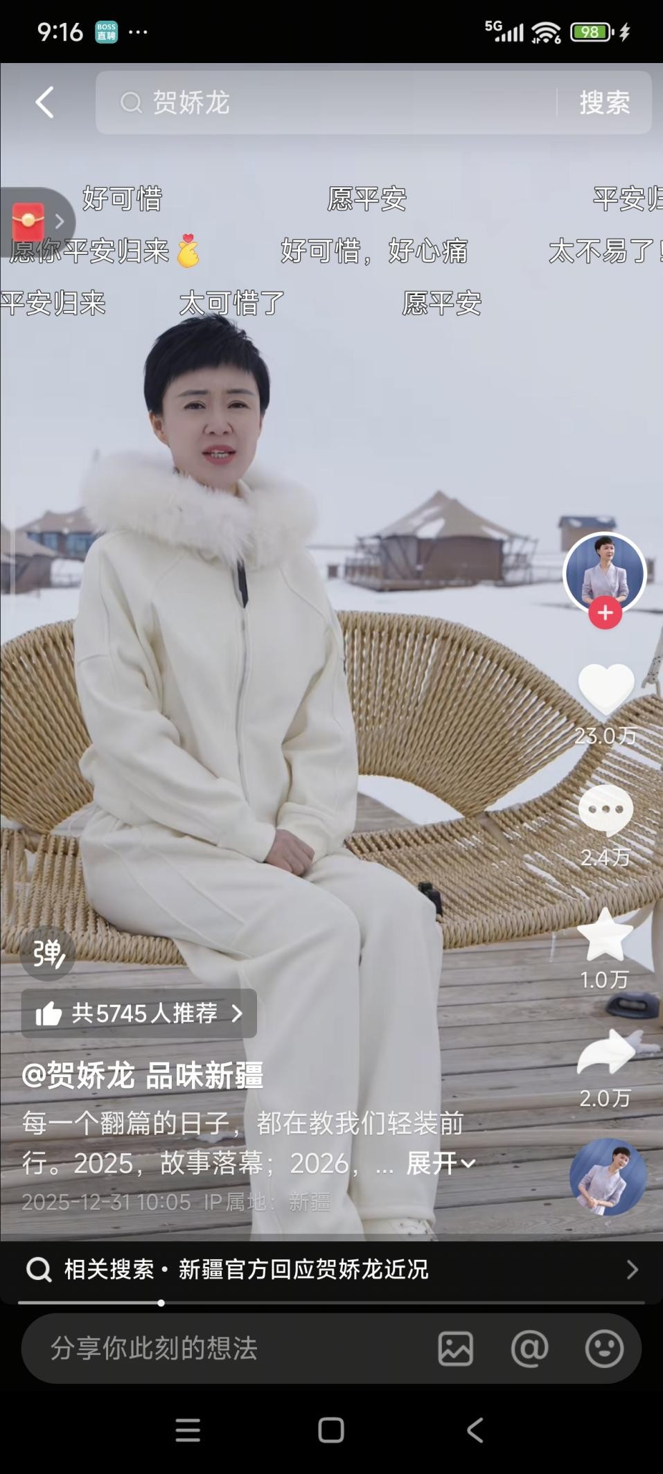 1月14日深夜,一则令人痛心的消息传遍网络:那个一身红衣策马扬鞭的网红贺娇龙走了,年仅47岁,她在雪原上飒爽策马的身影永远定格在了深爱的土地上。这个消息是我们每一个人不愿听到的,就在昨天下午,官方还在辟谣说,她还在医院救治呢,可没想到,消息来的这么突然。