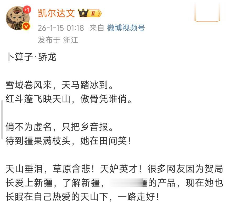 47岁,正是一个人年富力强、经验最为丰富的黄金年华。贺娇龙的离去,是新疆文旅事业的巨大损失,也是无数人心头难以愈合的伤口。