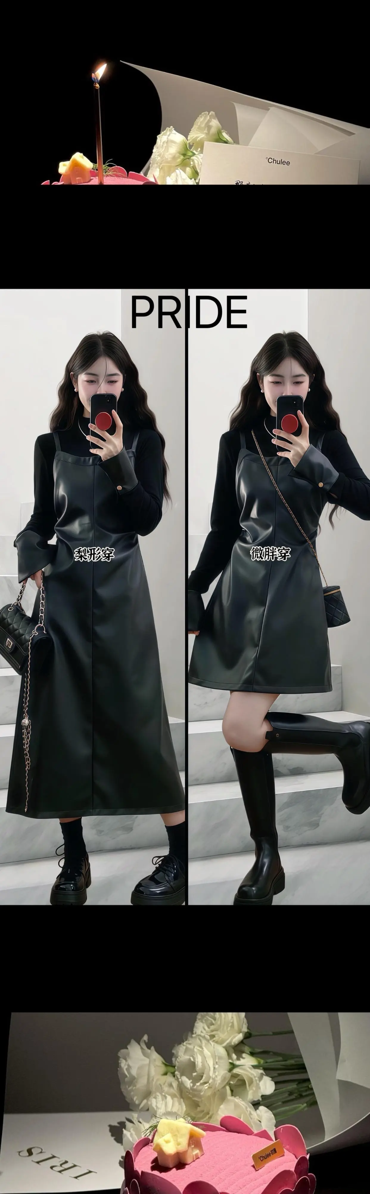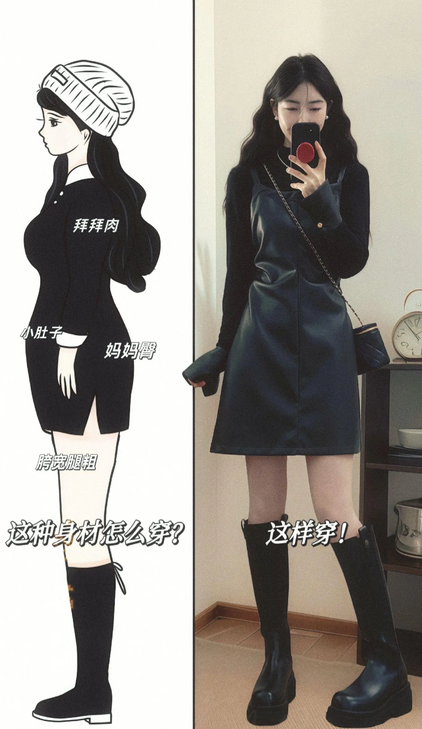 假两件皮裙!单穿打底都好看的假两件皮裙,上身也太显瘦显气质了叭!微胖身...