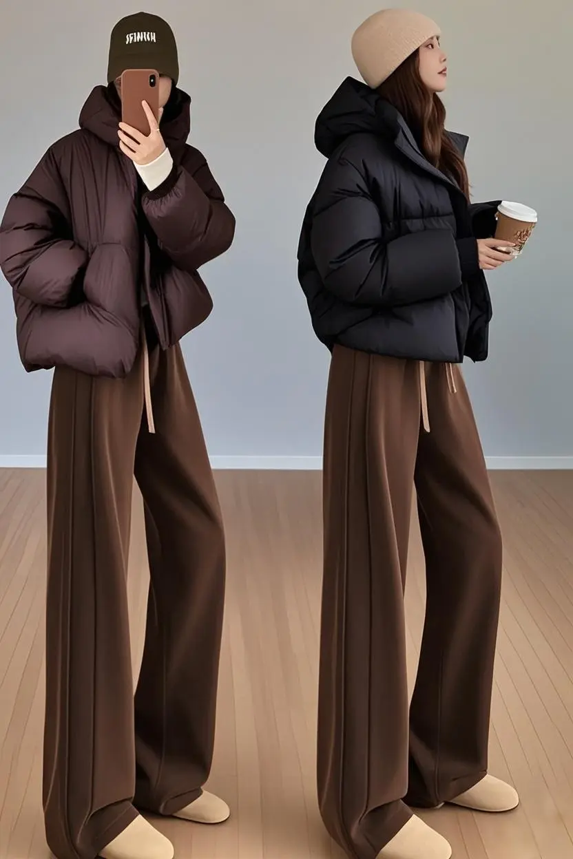 冬季人字纹开叉阔腿裤!加绒加厚保暖!版型显瘦显腿长~休闲百搭不挑人不挑身材年龄