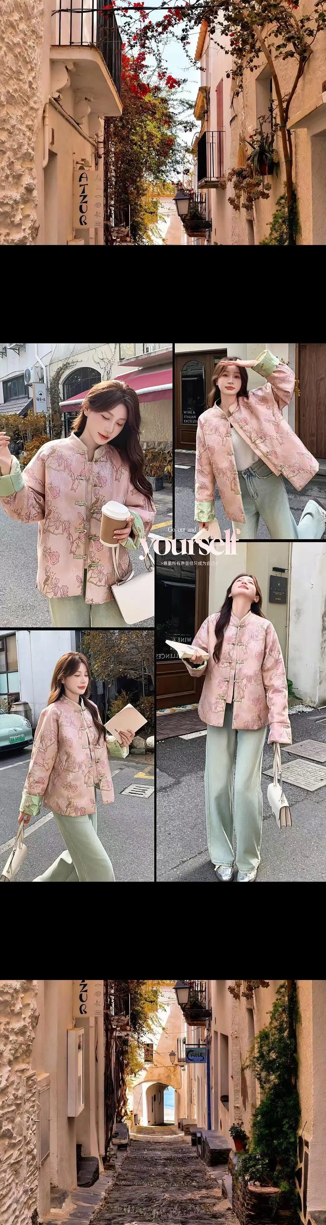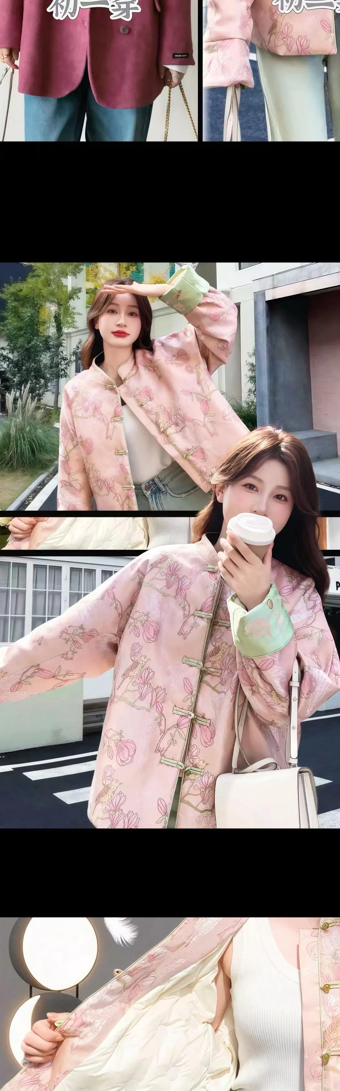 新年秀出新国风穿搭 好爱我的中式羽绒服粉色温温柔,新中式缎面提花好美好浪漫,好适合新年和节日,高阶感又休闲甜美