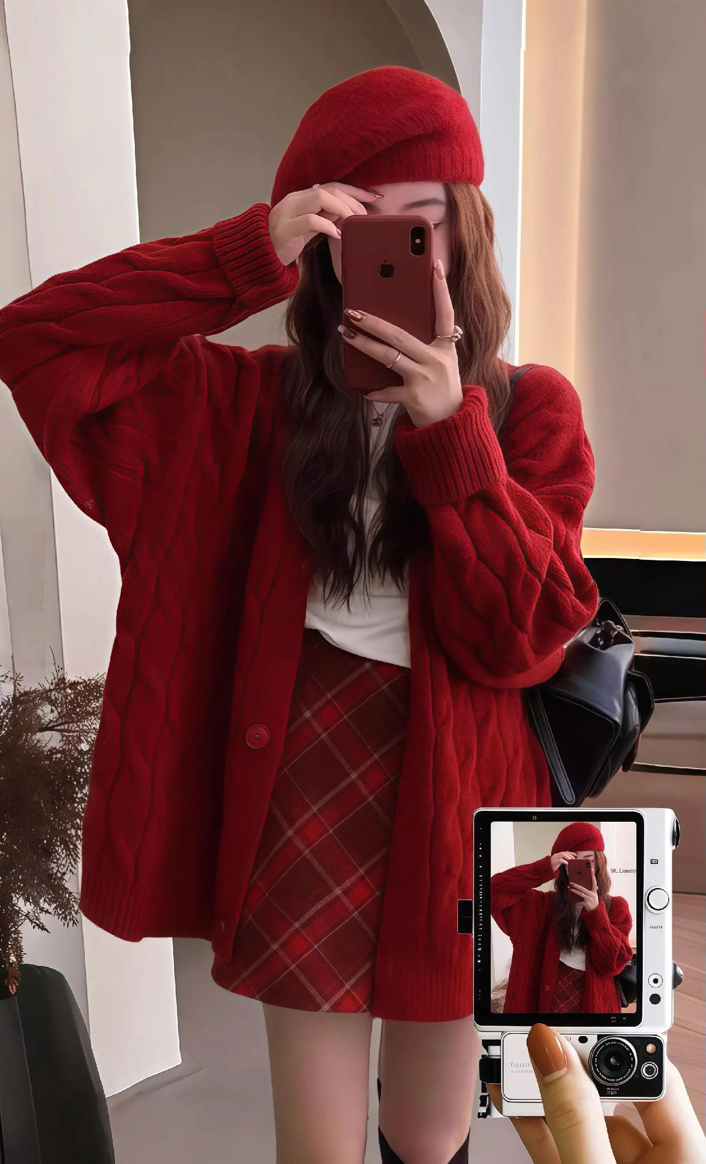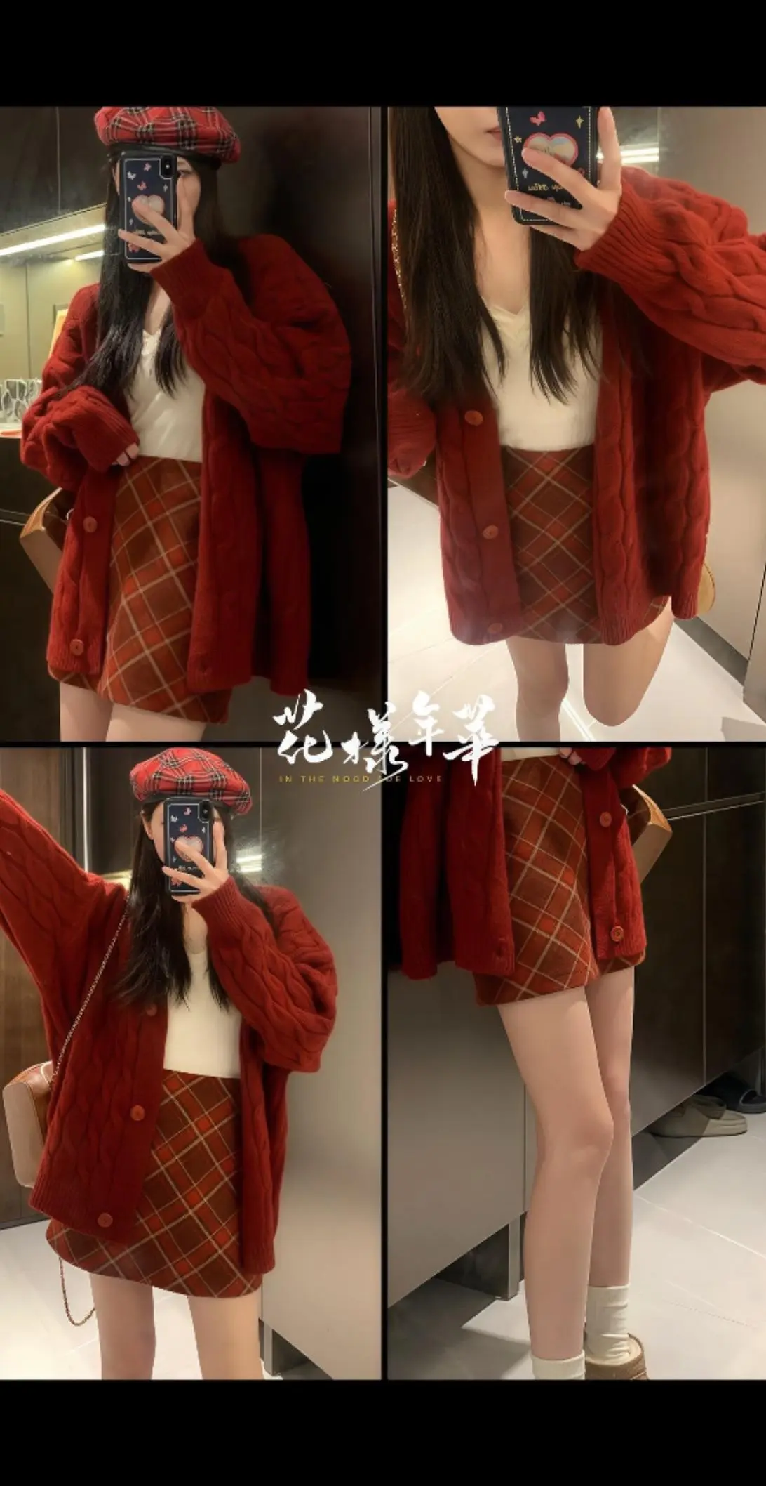 新年红色针织开衫,单穿打底都好好看啊!半身裙版型巨好,遮胯显腰细,梨形身材轻松驾驭!一套上身,新年氛围感满满!日常约会、走亲访友穿都合适,轻松变身甜酷女孩。