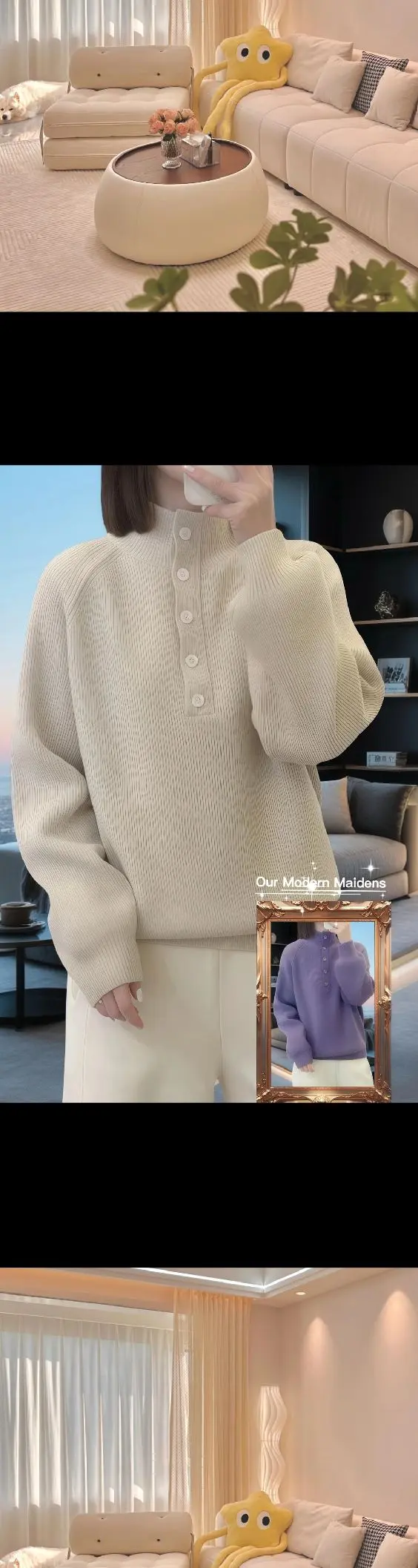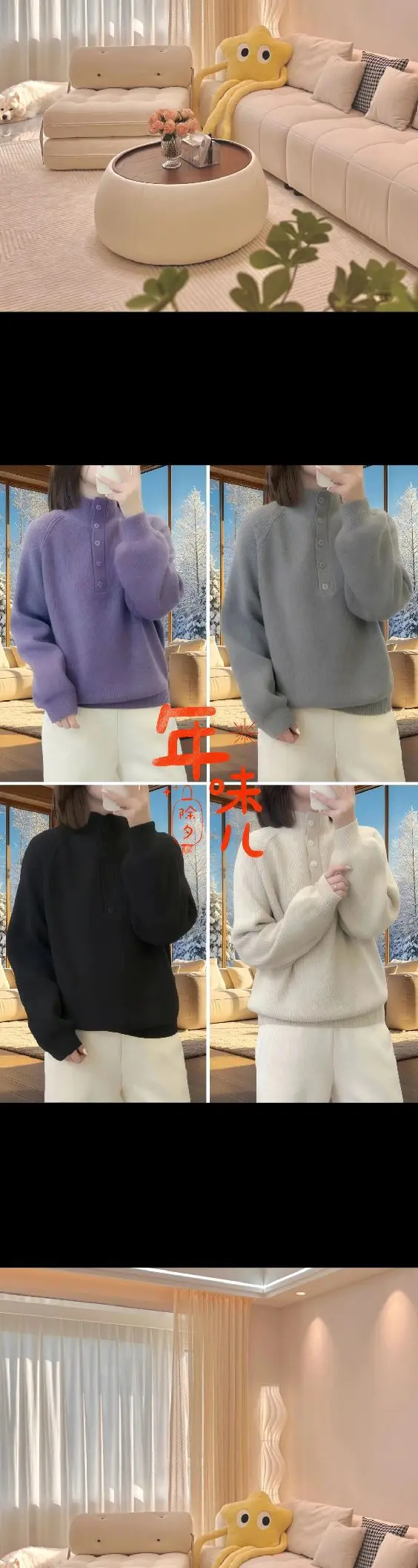 法式优雅温柔气质~这款上衣真的是太别致啦!高领加入纽扣的设计,洋气又时尚。软软糯糯的面料,穿着超级舒服,就像被云朵包围一样。 大码宽松的版型,不挑身材,轻松遮住肚子上的肉肉,让你自信满满。 灰色的色调高级感十足