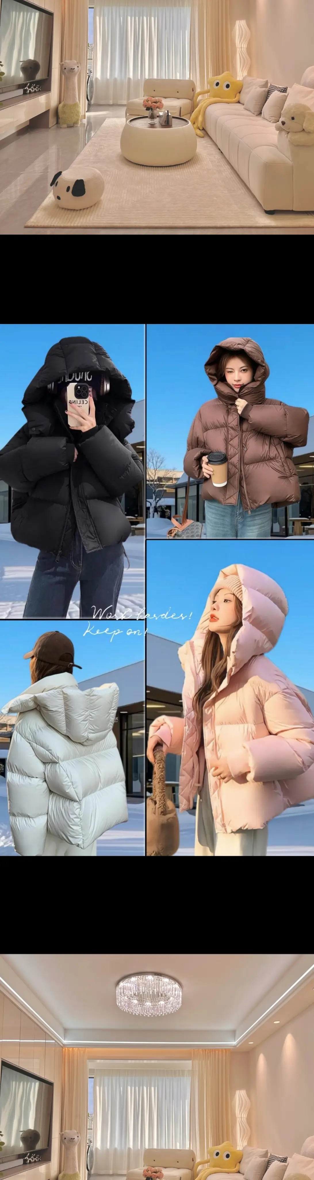 宝子们,这件羽绒棉服给我锁死!版型宽松不挑人,藏肉一绝,360度无束缚。保暖超神,抗风一流!