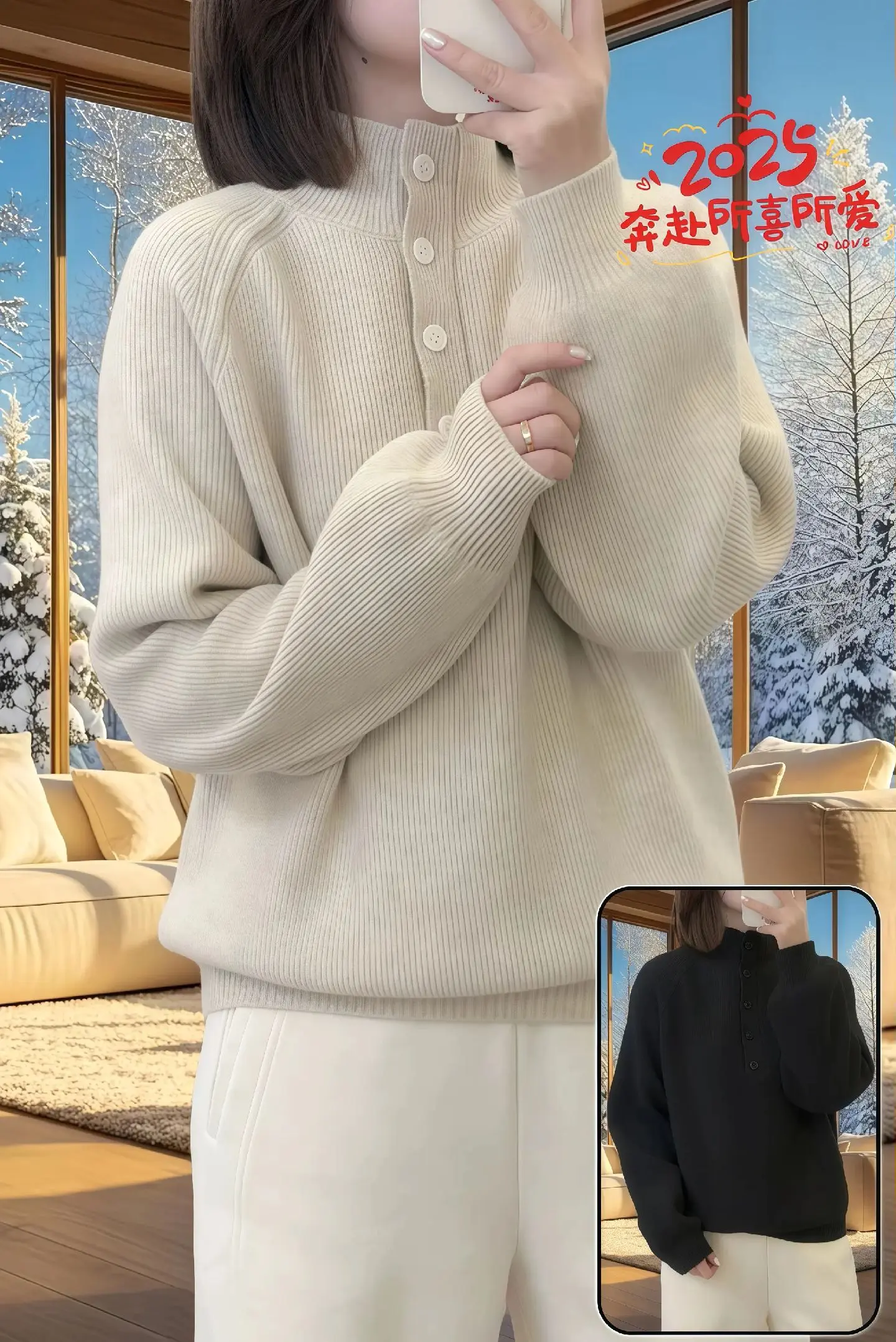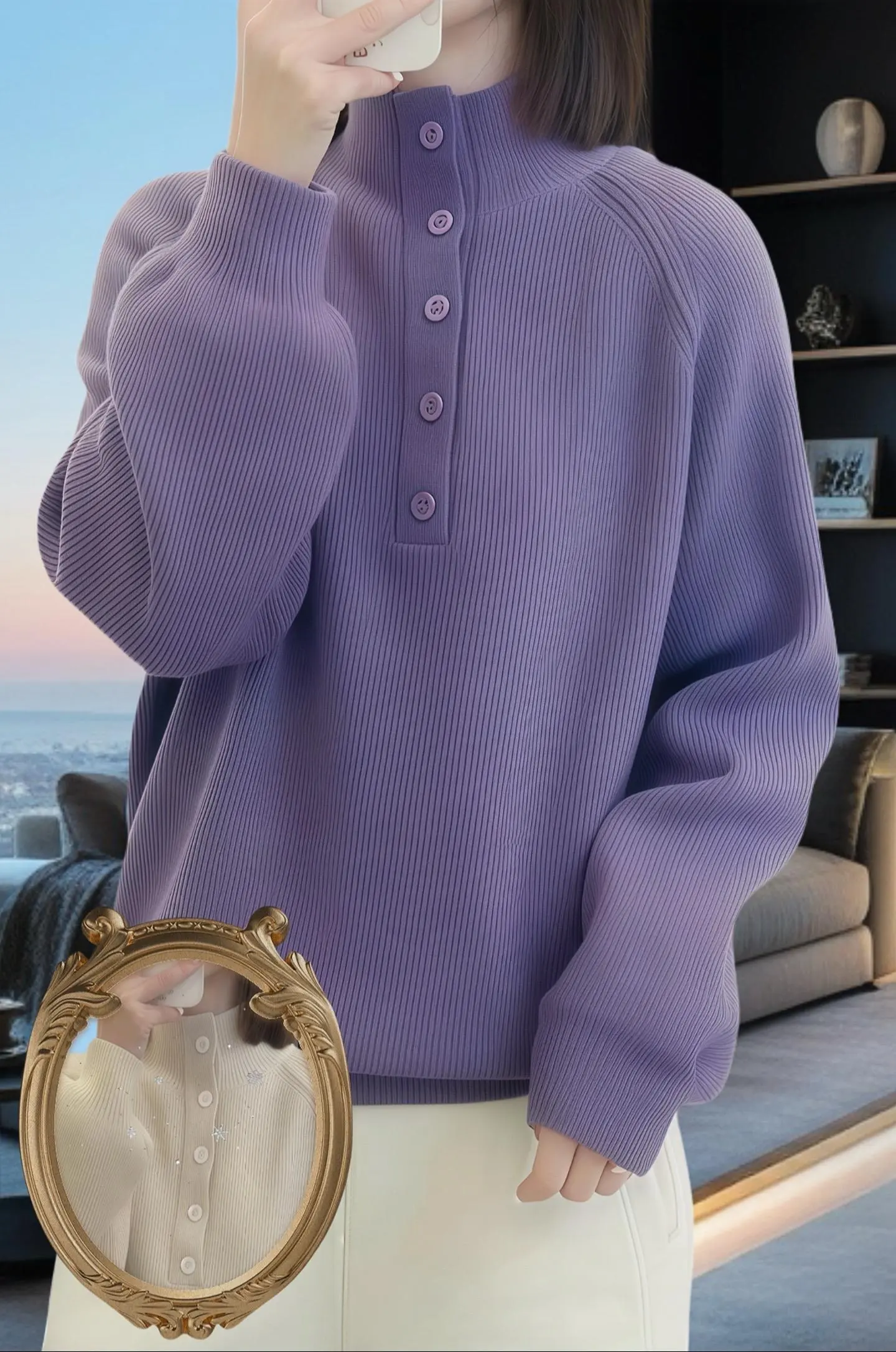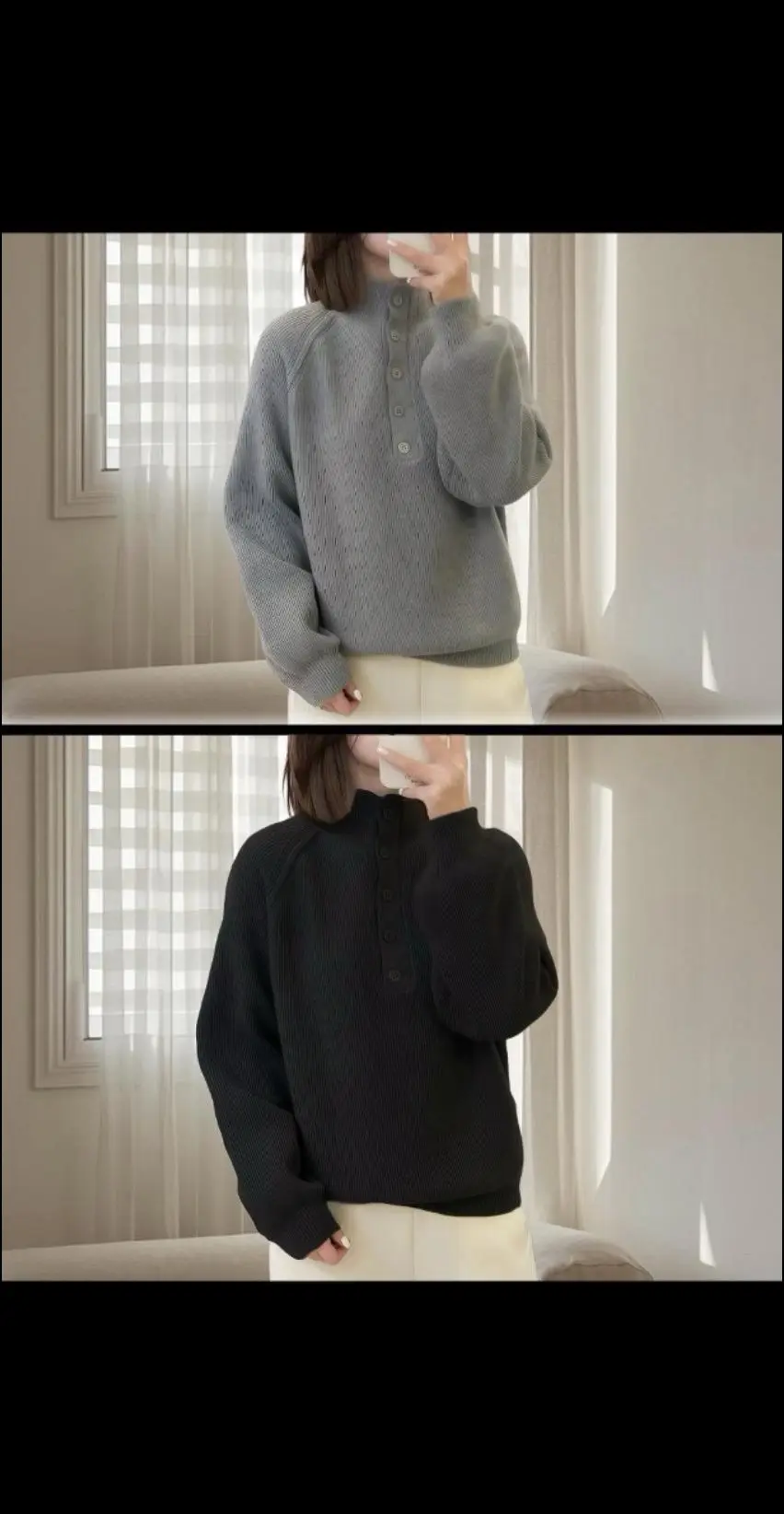 法式优雅温柔气质~这款上衣真的是太别致啦!高领加入纽扣的设计,洋气又时尚。软软糯糯的面料,穿着超级舒服,就像被云朵包围一样。 大码宽松的版型,不挑身材,轻松遮住肚子上的肉肉,让你自信满满。 灰色的色调高级感十足