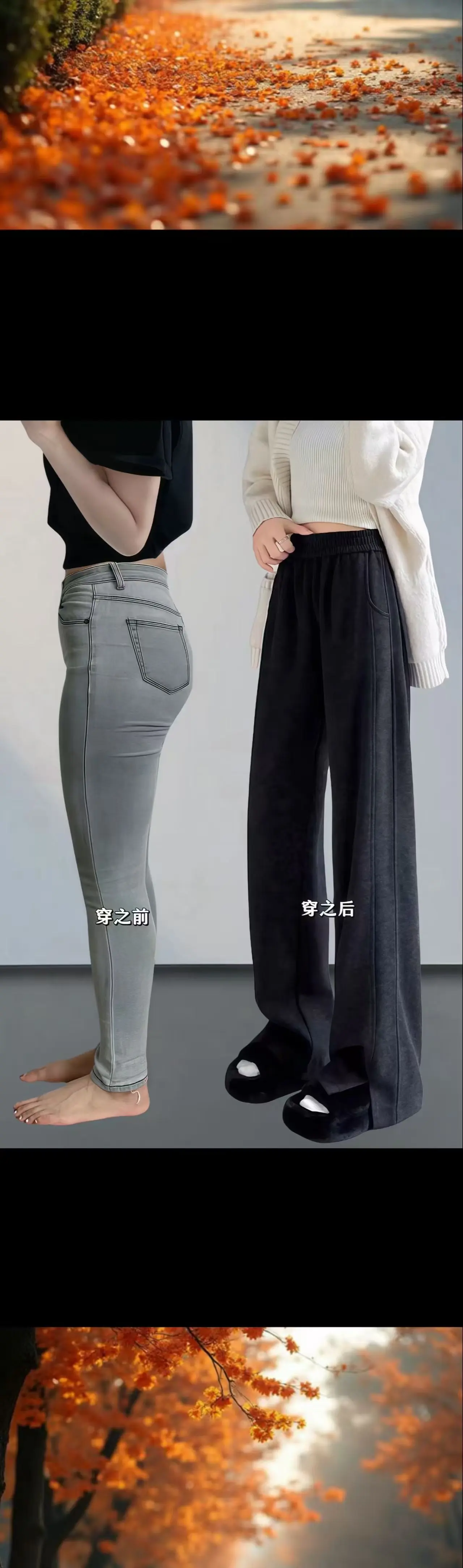 这条人字纹毛呢加绒开叉阔腿裤真的心动了!微胖女生的显瘦神裤~绝了,巧妙修饰腿型,任意搭配皆减龄俏皮。面料质感舒适,不褪色不起球。多裤长厚度可选,遮胯臀肚腩~