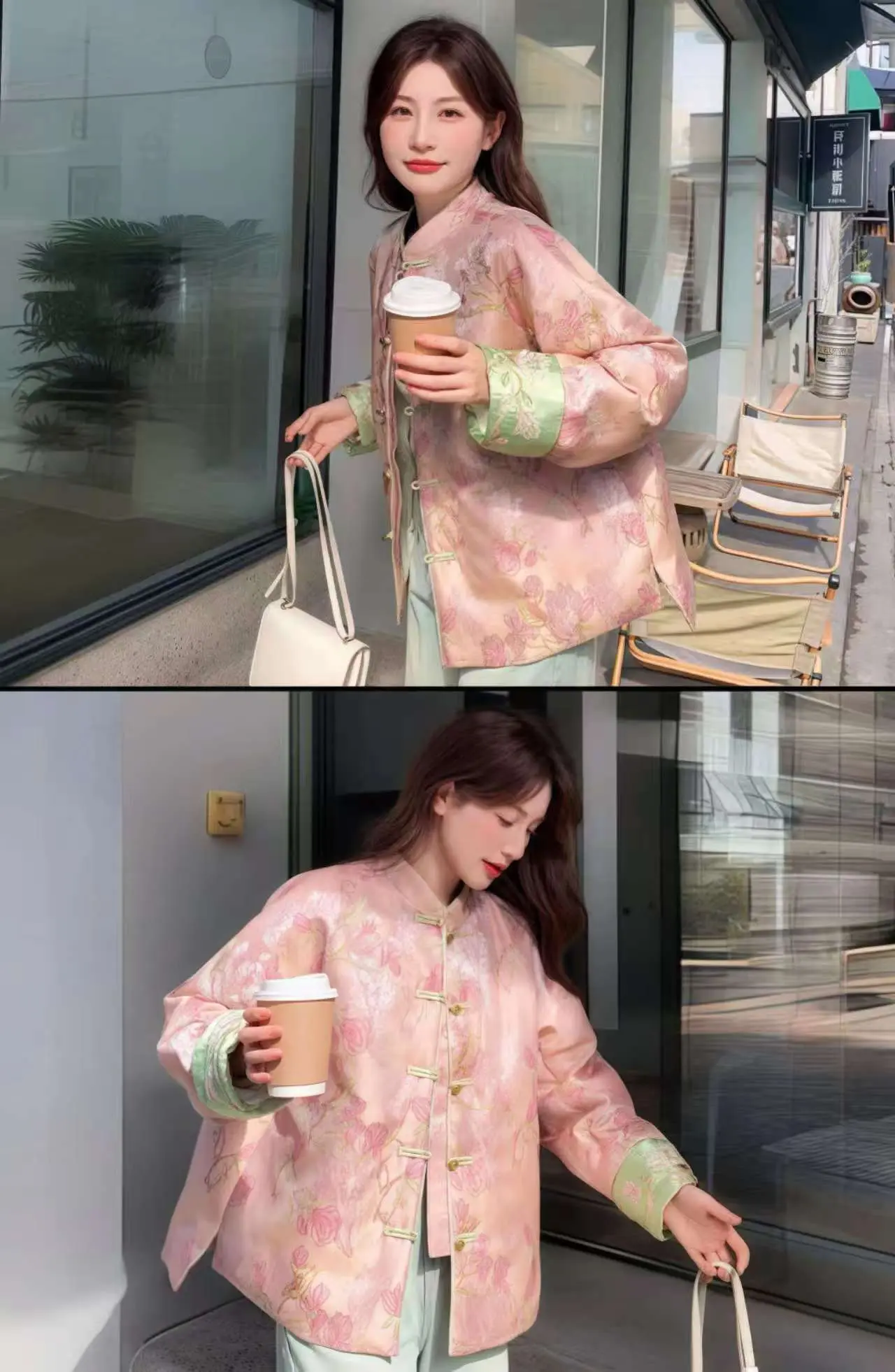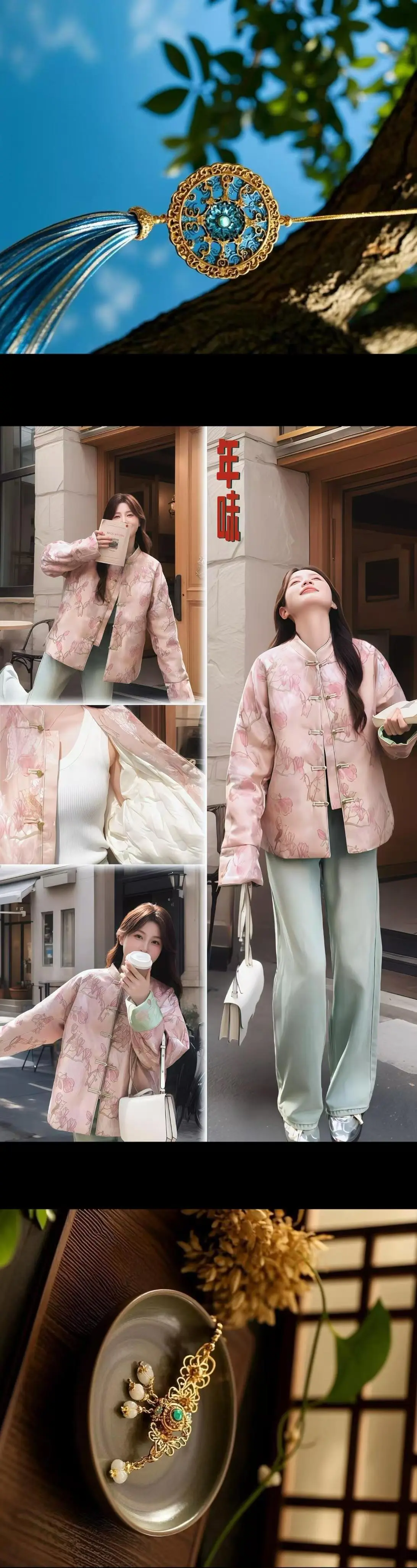 新年秀出新国风穿搭 好爱我的中式羽绒服粉色温温柔,新中式缎面提花好美好浪漫,好适合新年和节日,高阶感又休闲甜美