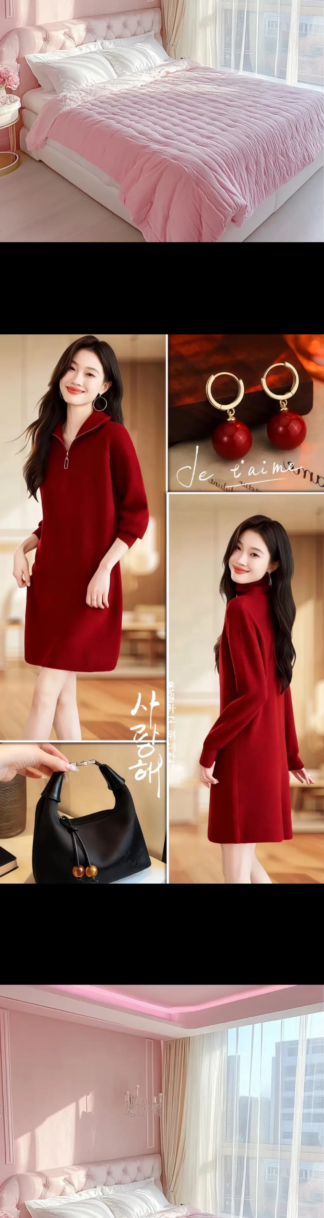 姐妹们,挖到宝了!这款秋冬新款半拉链中长款毛衣女裙,真的好美!安哥拉红...