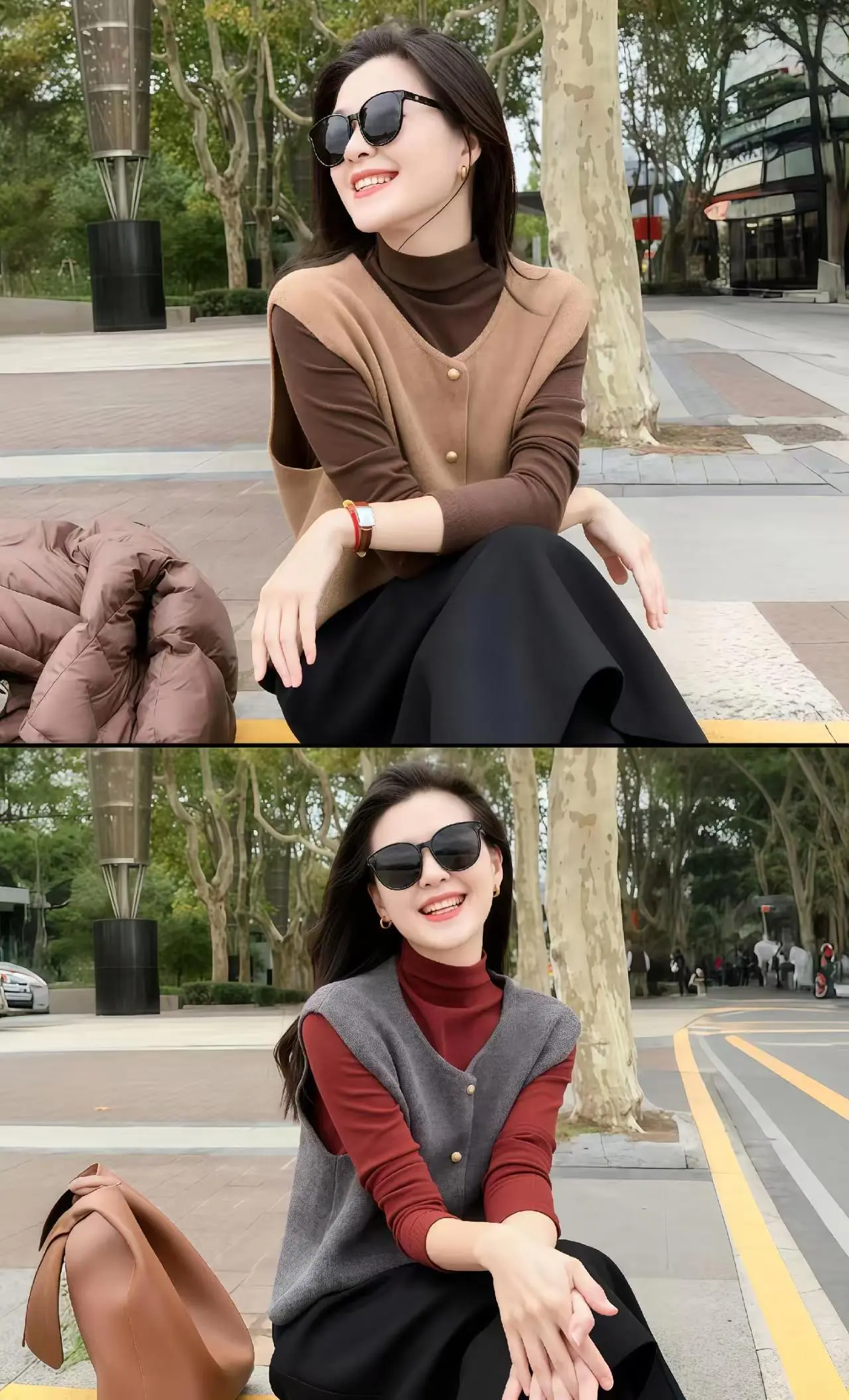 姐妹们,这款针织小马甲简直是今年冬日穿搭王炸!一上身,气质这块狠狠拿捏住。 颜色洋气,不挑肤色不挑人。小圆领设计修饰脖颈线条,宽袖口舒适又随性,搭配上精致小金扣,细节感拉满,高级感爆棚。 单穿就是氛围感美女,叠穿还能做小打底,风格百变,适配各种场合。无论是搭配牛仔裤的休闲风,还是配半身裙的优雅风,它都能完美驾驭