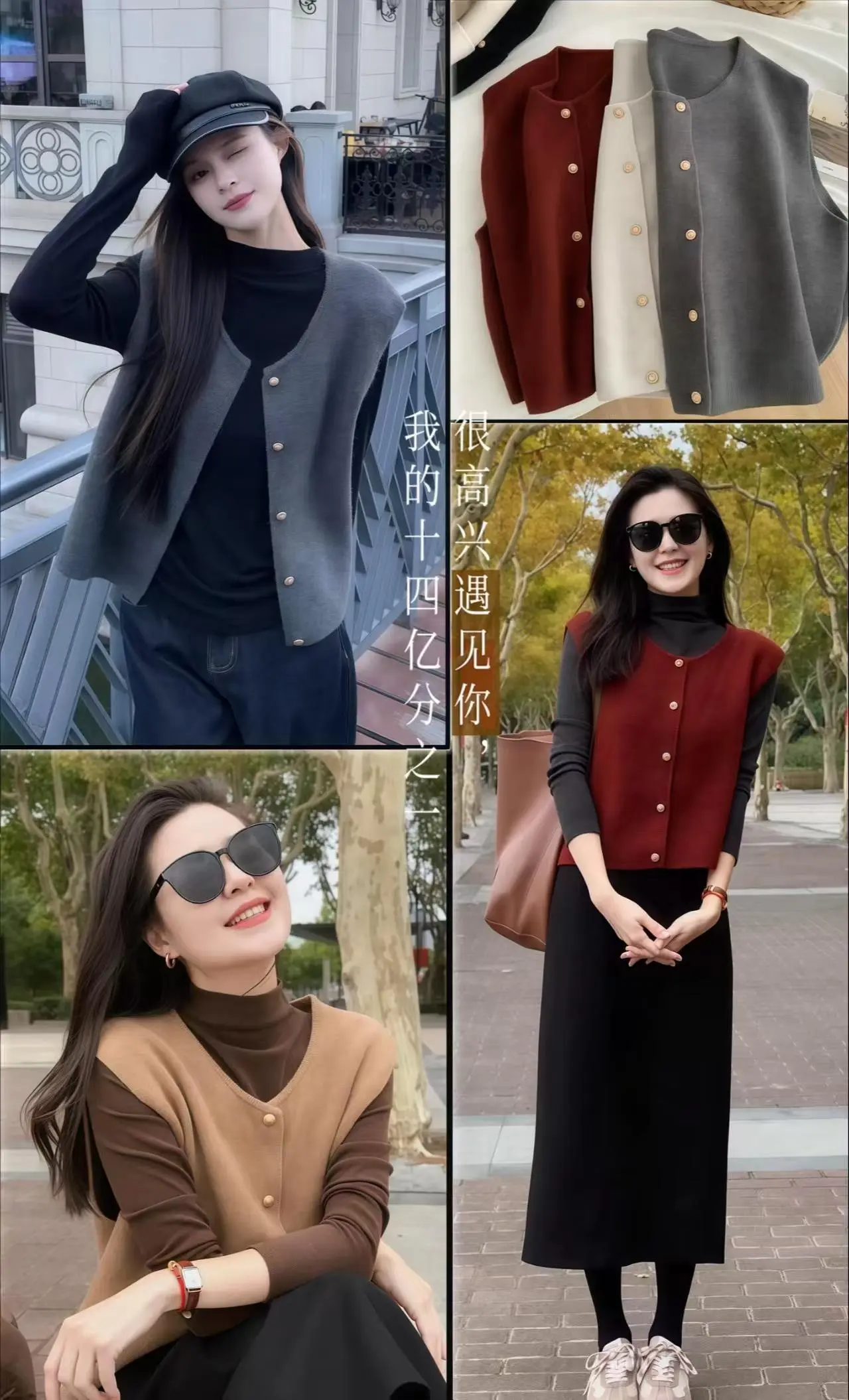 姐妹们,这款针织小马甲简直是今年冬日穿搭王炸!一上身,气质这块狠狠拿捏...