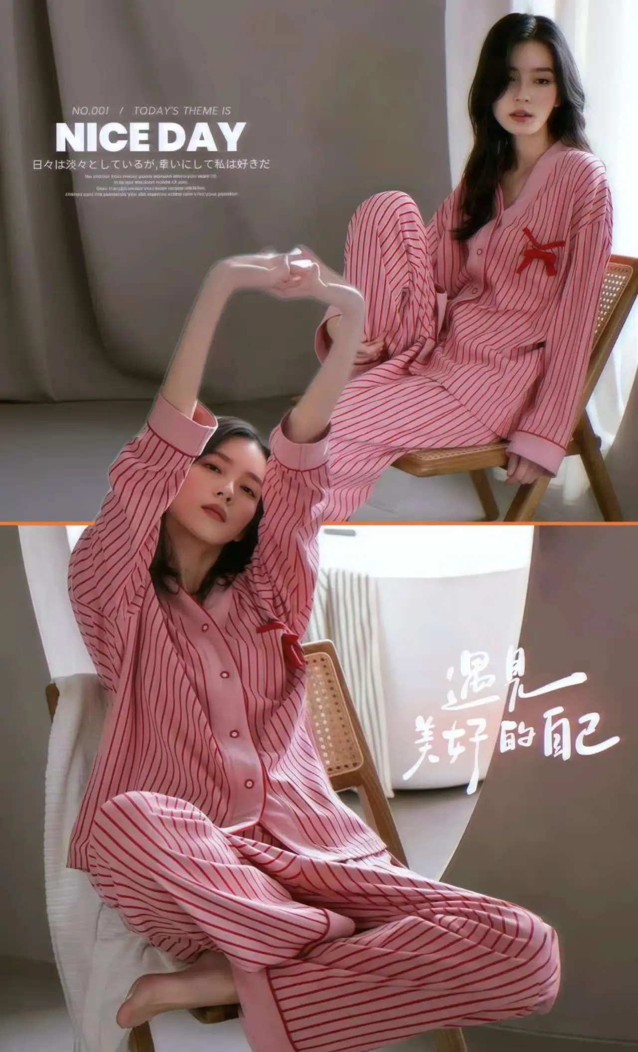 宅家也要精致感?试试这款韩版条纹睡衣套装,让你轻松拿捏精致与舒适。...