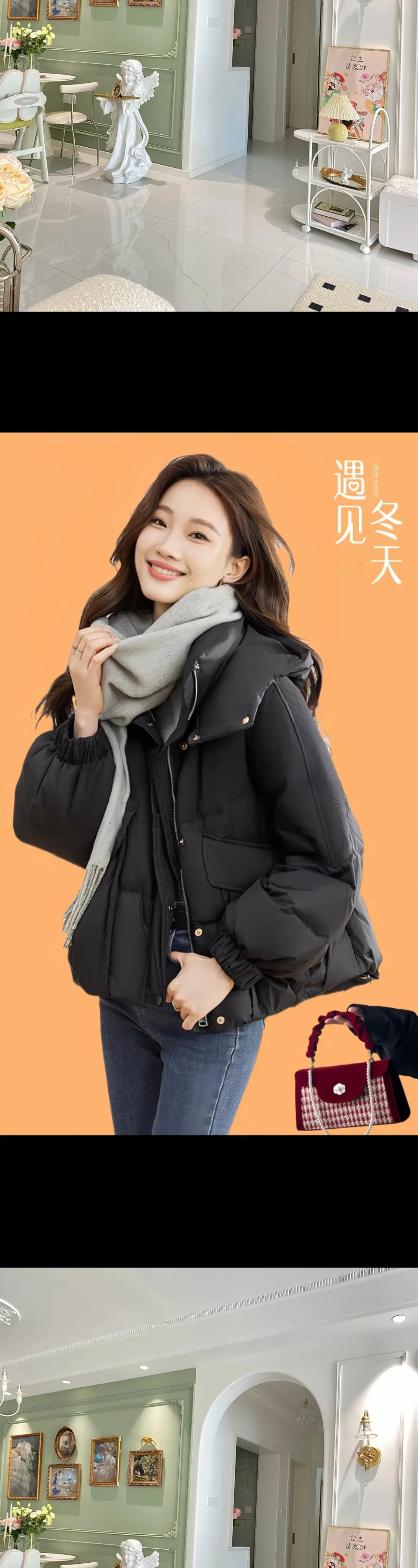 新年就要穿新衣!宝子们,这款时尚小短款棉服简直美炸了,连帽设计,保暖又...