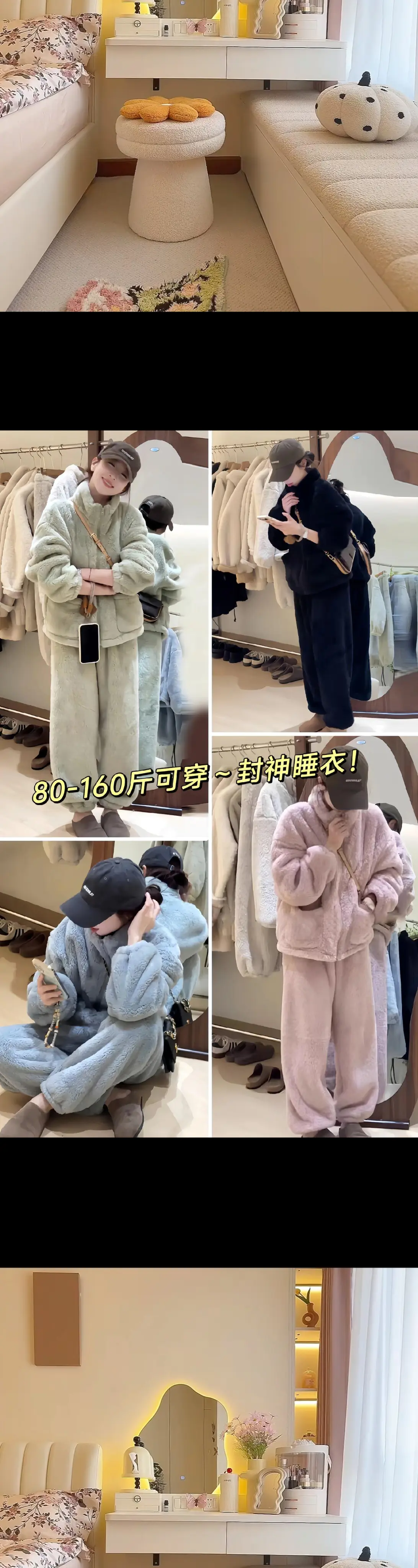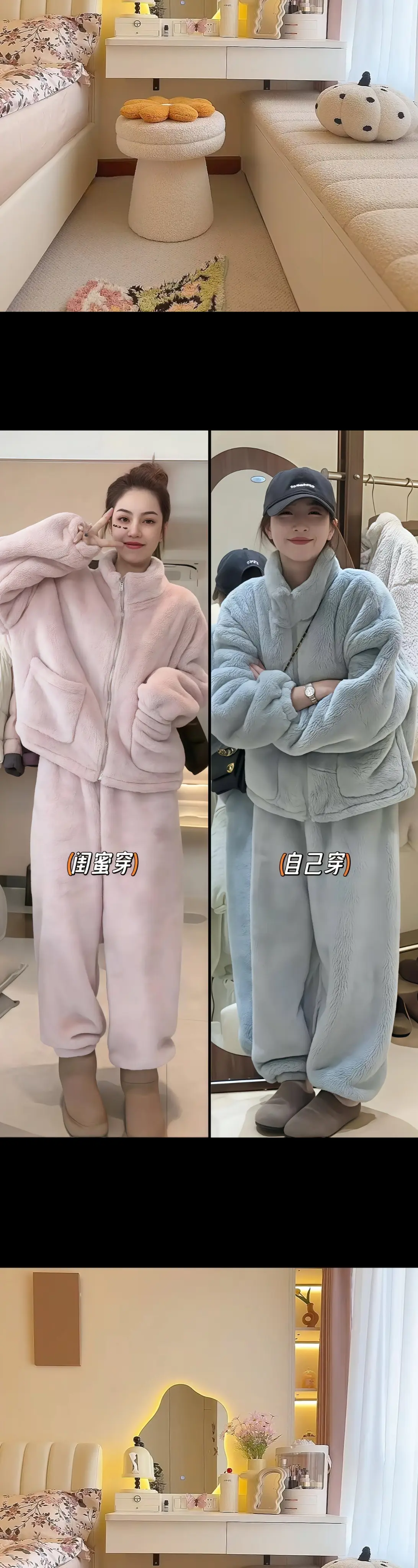 这套毛茸茸家居服!半高领设计修饰脸型气质保暖~冬天穿好暖和,加绒加厚~多颜色可选,版型宽松不挑身材不挑年龄,冲冲冲!