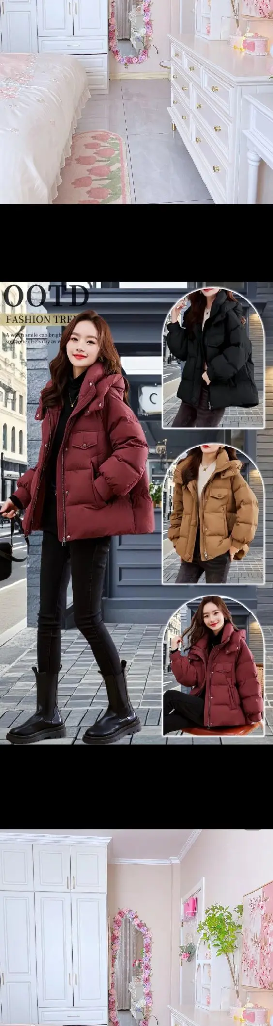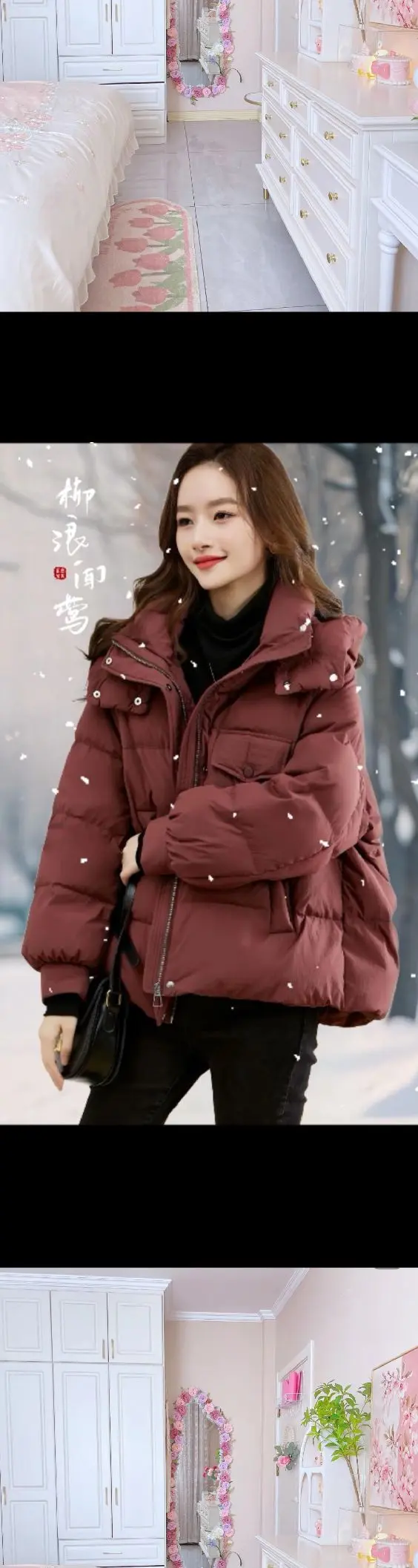 韩版中长连帽棉服,冬日的温暖与时尚担当它那韩版独有的版型,自带一...