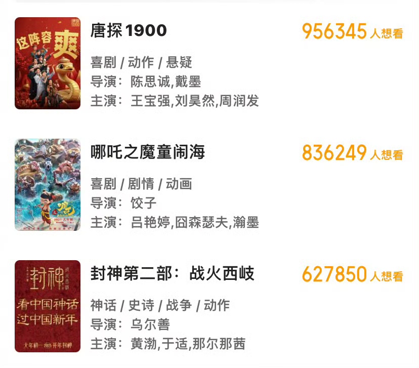 今年春季档六部电影的时长和“想看”人数对比,如果只能看一部电影,你最想看哪一部?