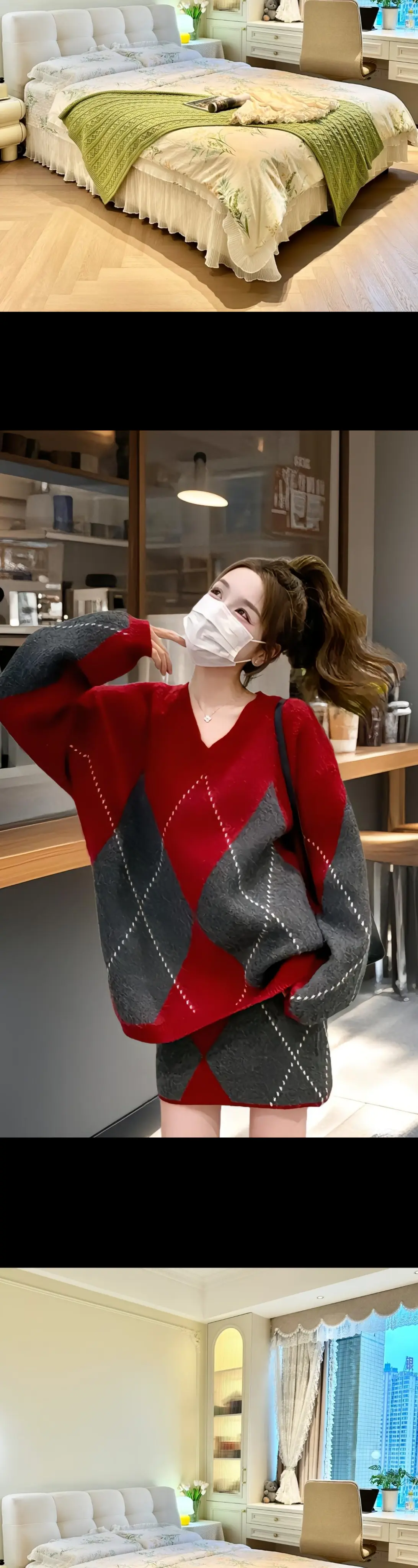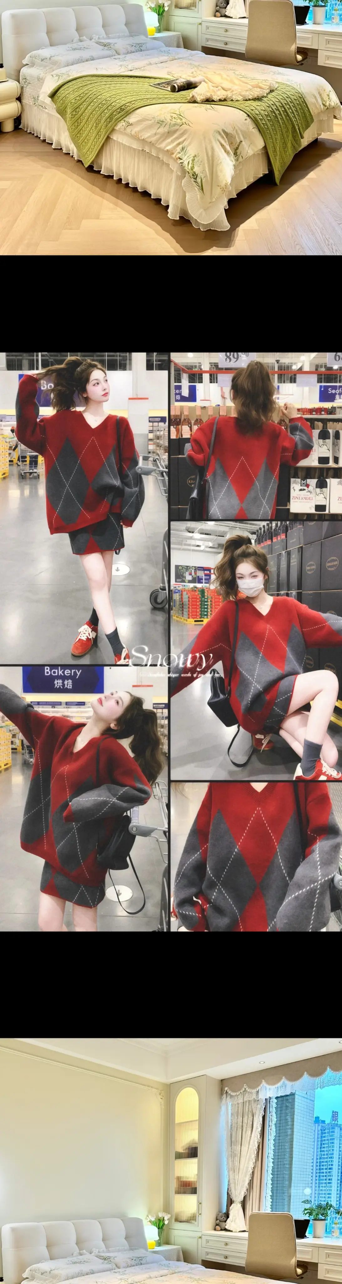 大学生回村穿搭 新春的钟声,如诗的旋律,此款红色针织套装裙似一首优雅的诗篇,引领我踏入璀璨的新年绮梦。 流线型的V领设计,宛如春日绽放的花朵,悄然绽放的美丽,拉长颈部线条,显露天鹅般的优雅。细腻的针织纹理点缀领口,如花蕊般精致迷人。 裙身撞色拼接,以鲜艳红色为主,与柔和色调相映成趣,犹如夜空烟花与云霞共舞,点亮每一个瞬间。短裙版型活泼灵动,行走间如蝶翩跹,洋溢着青春活力。