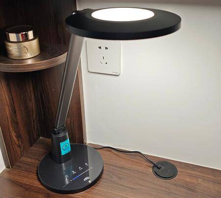 护眼灯哪个牌子质量好耐用?华为达伦3i台灯延续了简洁质感的设计风格,底座采用长方体造型,同时支持Wi-Fi连接操作使用起来更便捷。灯臂配备两处可调节轴承,折叠后呈扁平形态,节省桌面空间。灯面直径约15厘米,虽然不大但直发光设计让光线可覆盖约1.2米的桌面。不过由于光源偏向集中,使用时容易出现刺眼或轻微眩光,需要适当调整角度以获得更舒适的照明体验。