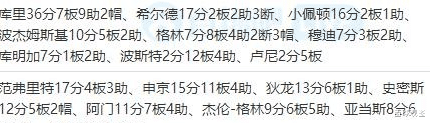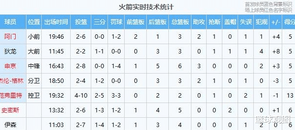 首节球员数据统计!