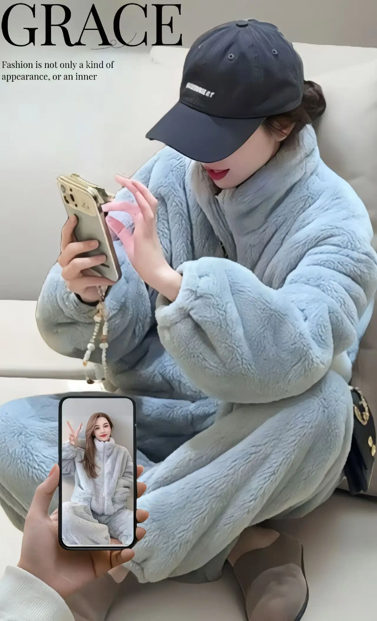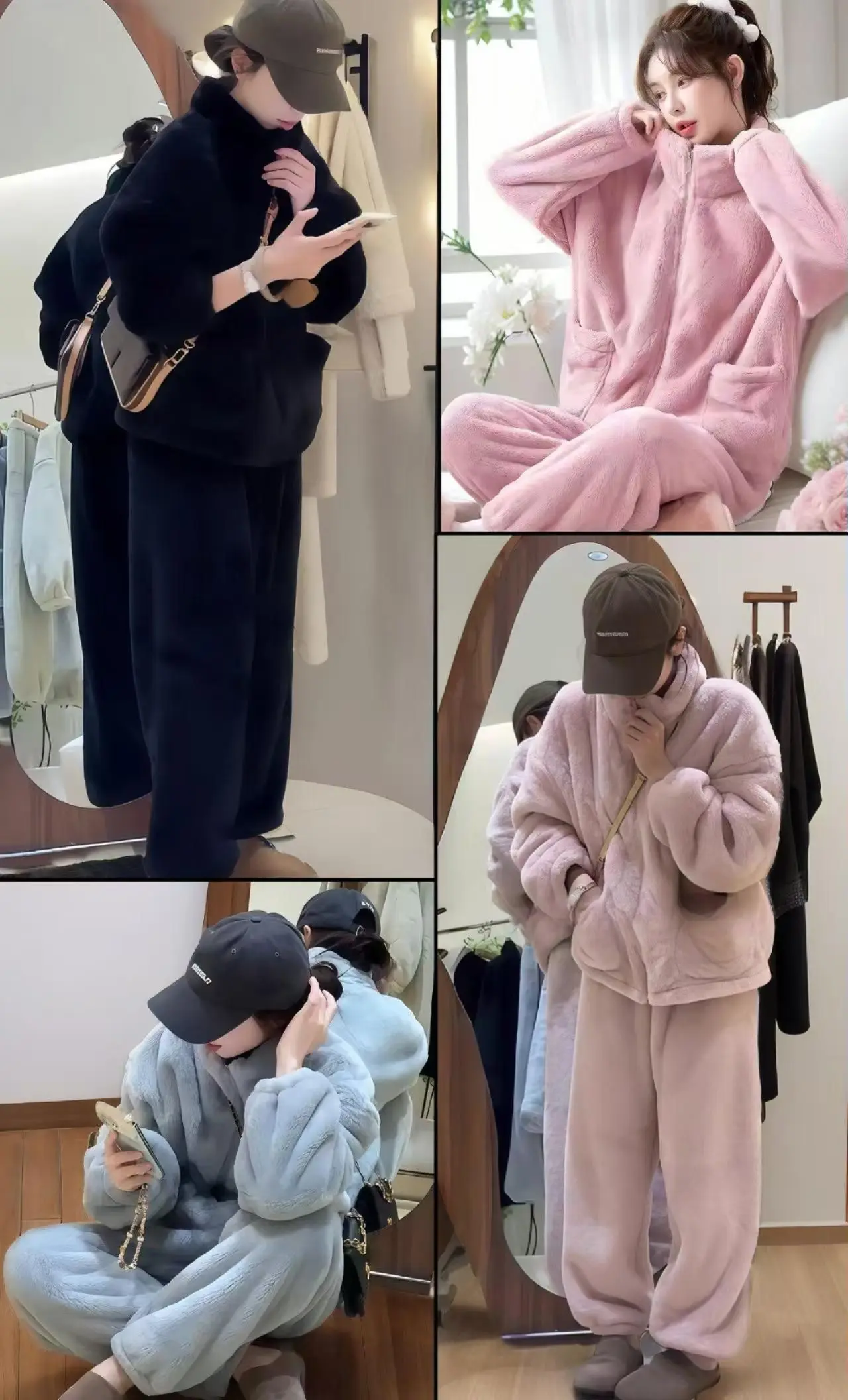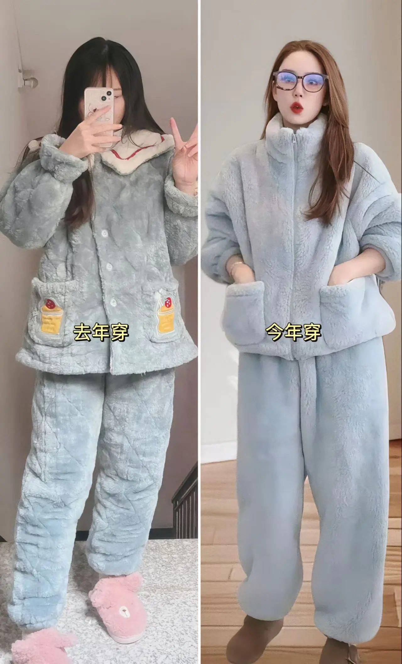 这套新款冬季加绒加厚睡衣套装!舒适保暖~时尚气质~冬天穿这套不怕冷啦!...