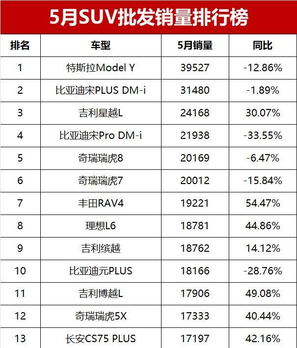 在当今的汽车市场上,SUV一直占据着重要的地位,而新能源车型的崛起更是使得这一领域面临激烈的竞争。在2025年5月的SUV批发销量排行榜中,特斯拉Model Y以惊人的销量继续稳居冠军,成为行业的一个重要标杆。紧随其后的是一系列国产品牌的壮丽崛起,如比亚迪和吉利,以及一些新兴的汽车制造商比如理想和零跑,这些变化背后反映了市场的多维度转型和挑战。对此,不同的消费者和业内人士无疑产生了不同的看法,有人认为国产品牌的迅速崛起是一种必要的挑战,而有人则对其未来潜力表示怀疑。这种争论让近年来的汽车市场充满了话题和吸引力。