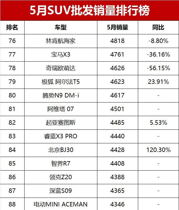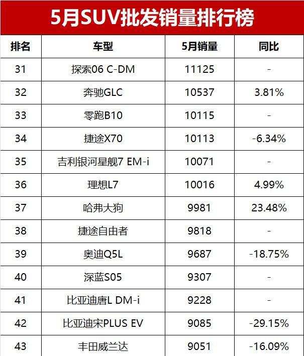 2025年5月的SUV市场数据表明,新能源车的表现依然强劲,国产品牌的崛起使得合资品牌面临前所未有的挑战。而随着消费者需求的多样化和技术的快速演进,整个市场的竞争格局正在重塑。未来,谁能真正适应市场变化,才会在这场车坛的争夺赛中,赢得消费者的认可与青睐。