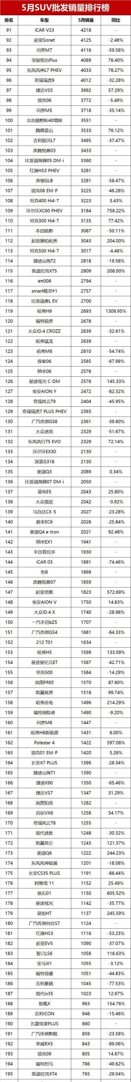 从总体来看,2025年5月的SUV市场展现出“新能源主导、国产向上、合资承压”的特征。特斯拉和比亚迪等头部品牌依然领跑,而吉利、奇瑞等传统车企则借助混动技术和性价比策略实现了快速崛起。理想和零跑等新势力则凭借差异化产品快速占领细分市场。