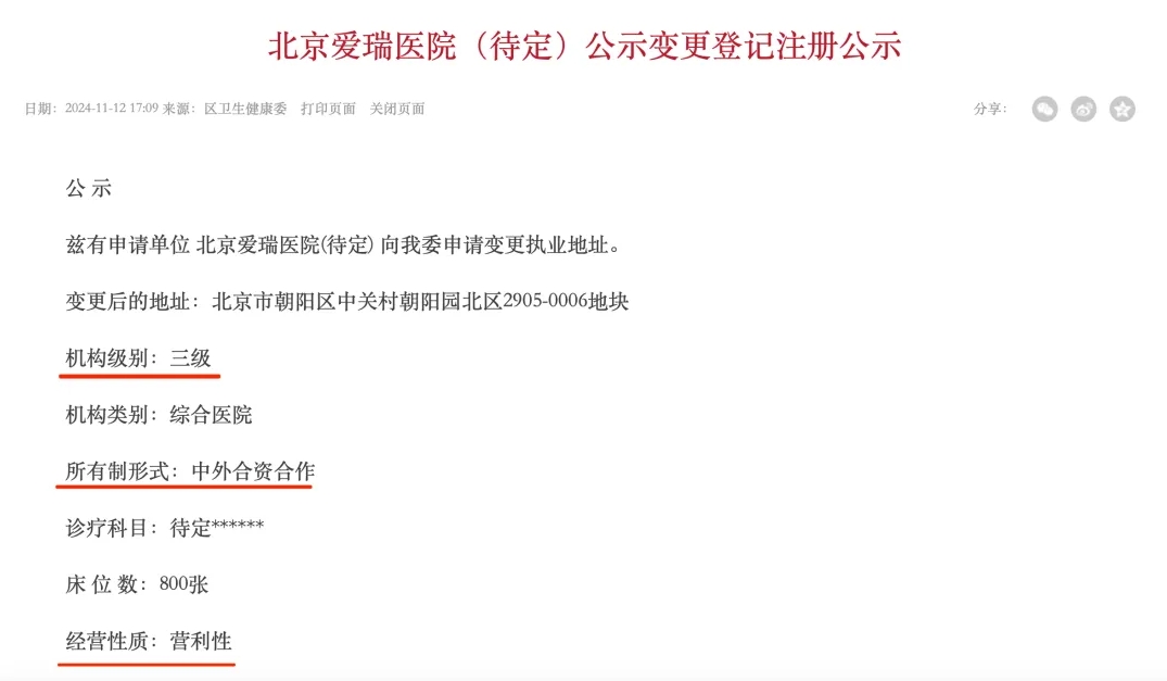 此次获批的项目将是一家三级综合医院,采用中外合资合作形式,预计床位数将达到800张。