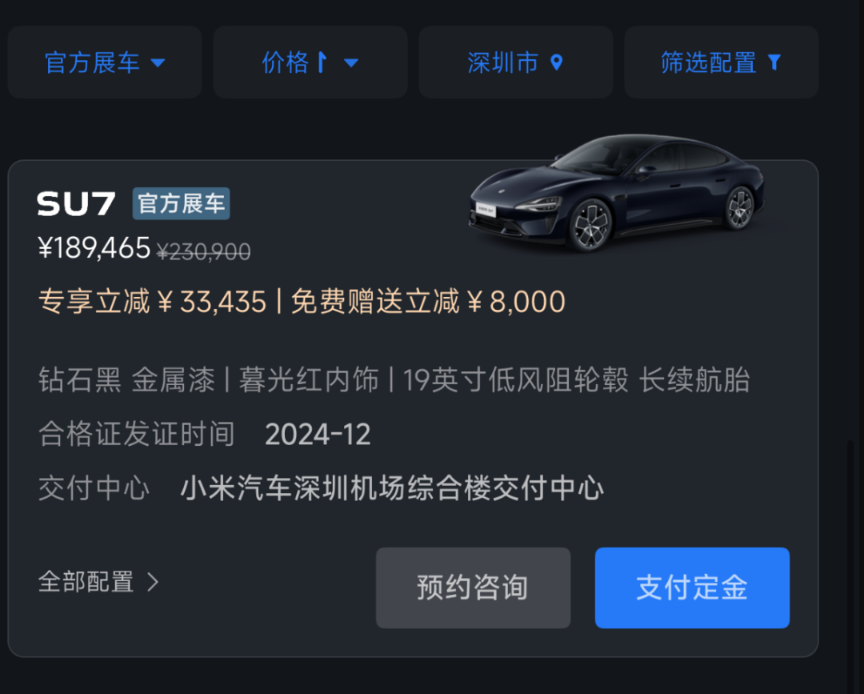 明面上看,是为用户提供“更快提车”的选择。但往深里想,这分明是雷军为年度目标再加一把火!此前他定下35万辆年销目标,虽然提前达成,但谁不想再冲一波数据?现车通道既能快速消化展厅车、运损车,又能以优惠吸引价格敏感用户,可谓一举多得。