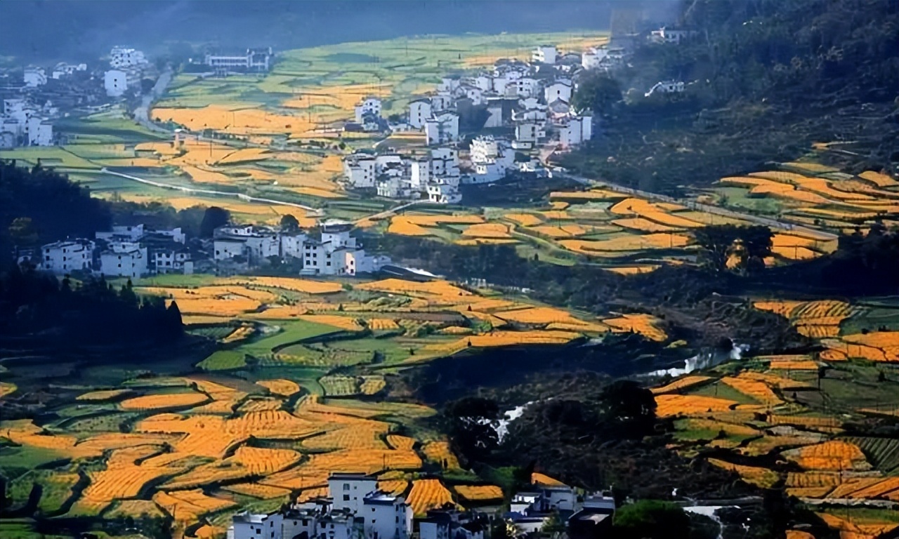 一生痴梦绝处,无梦到徽州。春天的婺源,梯田油菜花与白墙黛瓦的民居相互辉映,构成了一幅幅唯美的天然画卷。