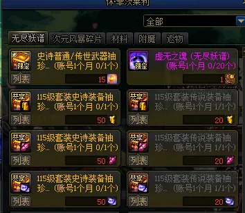 在“休·菲茨莱利”无尽妖谱商店,史诗武器保底罐子、虚无之魂、传说/史诗袖珍罐,兑换均是每个月1次。