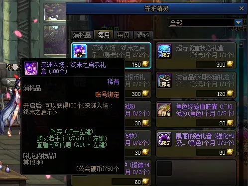 在公会NPC“守护精灵”处,每个月可兑换200张深渊票,虽说是“蚊子腿”,但总比没有要强。