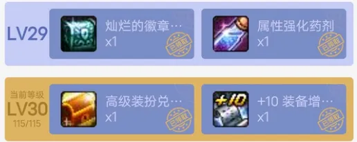 特邀:1个品级调整箱、3瓶10点疲劳药剂、2个装备提升礼盒;