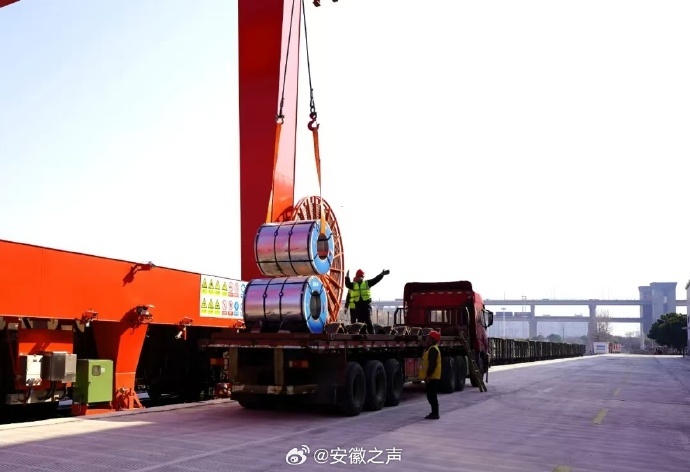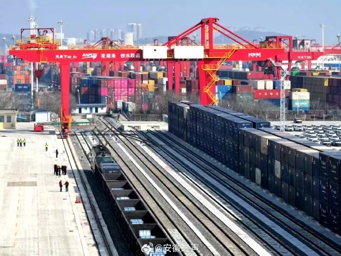 【#芜湖港朱家桥多式联运专用线开通运营#】2月13日上午9时许,一列满载1068吨卷钢及集装箱重箱的列车缓缓驶入芜湖市铁水联运公司铁路新站场,标志着改建完成后的国家物流枢纽朱家桥多式联运专用线正式开通运营。