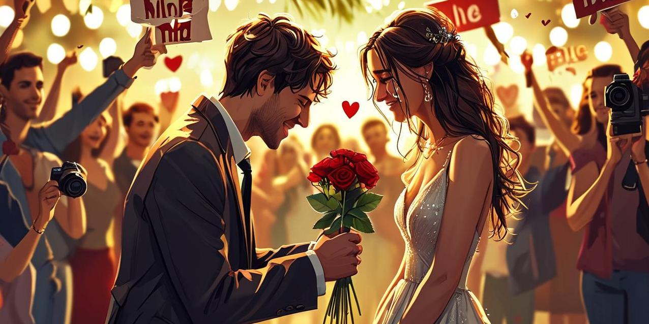 他单膝跪地,手握玫瑰,看着我说:“亲爱的,我知道我不够完美,但我保证努力让你幸福。