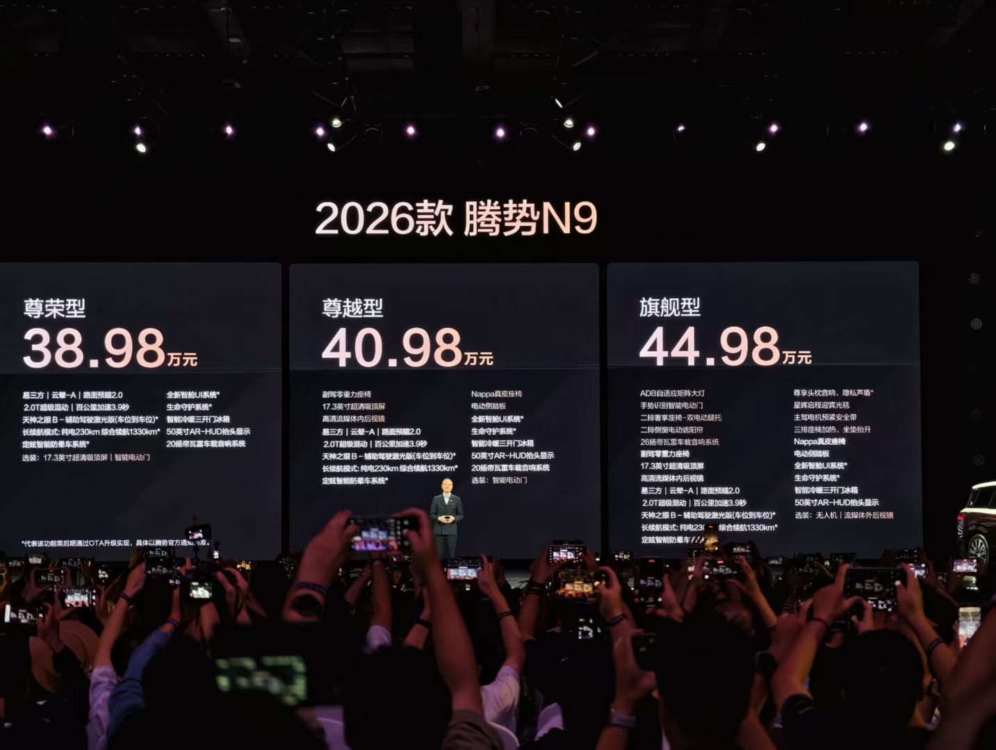 9月17日,2026款腾势N9作为超级混动豪华新座驾正式上市,推出3款车型,售价38.98万元~44.98万元。其采用优雅之势设计语言,有8款外观、3款内饰颜色可选,“紫瑢金”双色车身尽显东方贵气。该车全系标配多项科技豪华配置,动力强劲,实测百公里加速仅3.9s,综合续航1330km。还荣获“2025中国十佳底盘”认证,搭载定眩智能防晕车系统等。即日起至10月31日购车享限时权益,以“出色 更出众”实力,陪伴用户“腾势而上”。