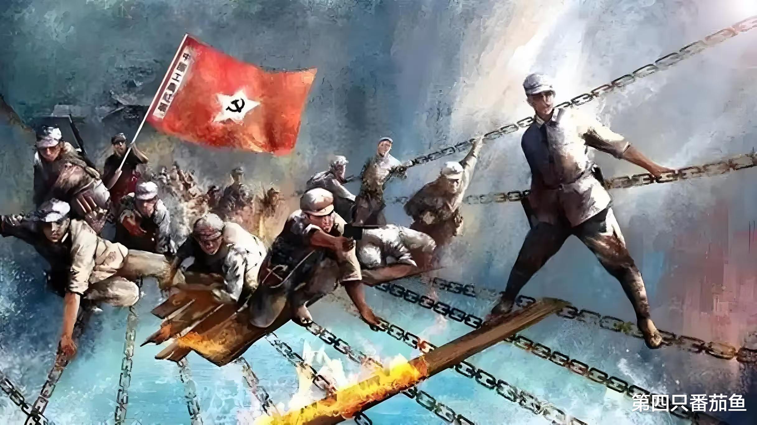 下午4时,2连连长廖大珠带着21名突击队员,踏着晃动的铁索,迎着敌人的轻机枪、重机枪吐出的子弹风暴,勇猛地向对岸冲去,在敌人不可置信的眼神之中,硬生生的拿下了这座“生命之桥”为红军打开了一条生存的通道。