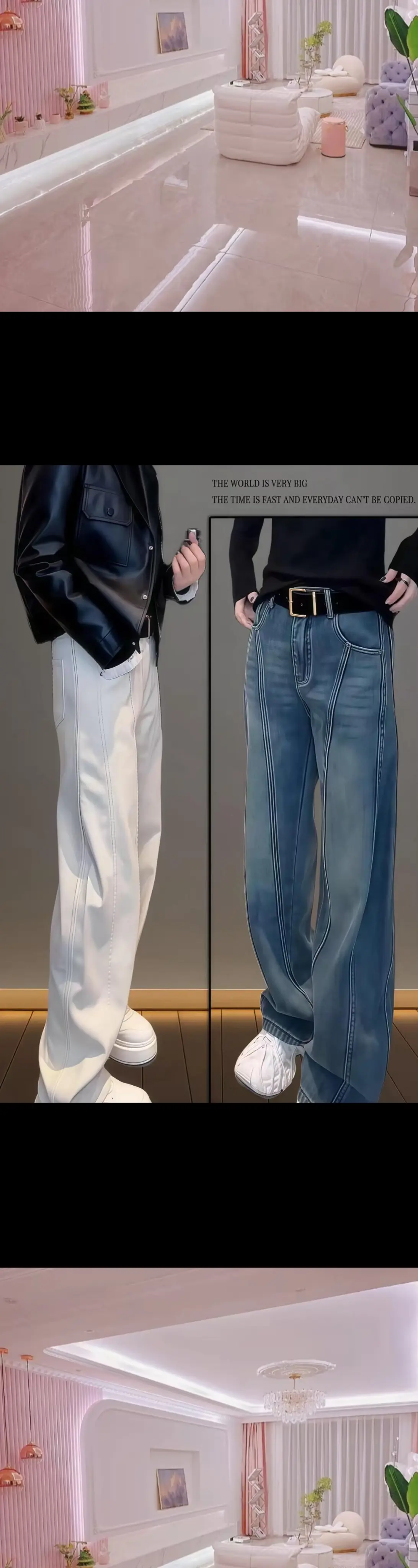 ❤️一眼沦陷的早春战裤来啦~春季新款弯刀显瘦牛仔裤来啦!白色超清新,宽松高腰直筒阔腿版型,超显腿长!3D立体裁剪,修饰腿型,遮胯藏肉,各种身材都能驾驭!新疆长绒棉面料,柔软舒适,品质超棒💕